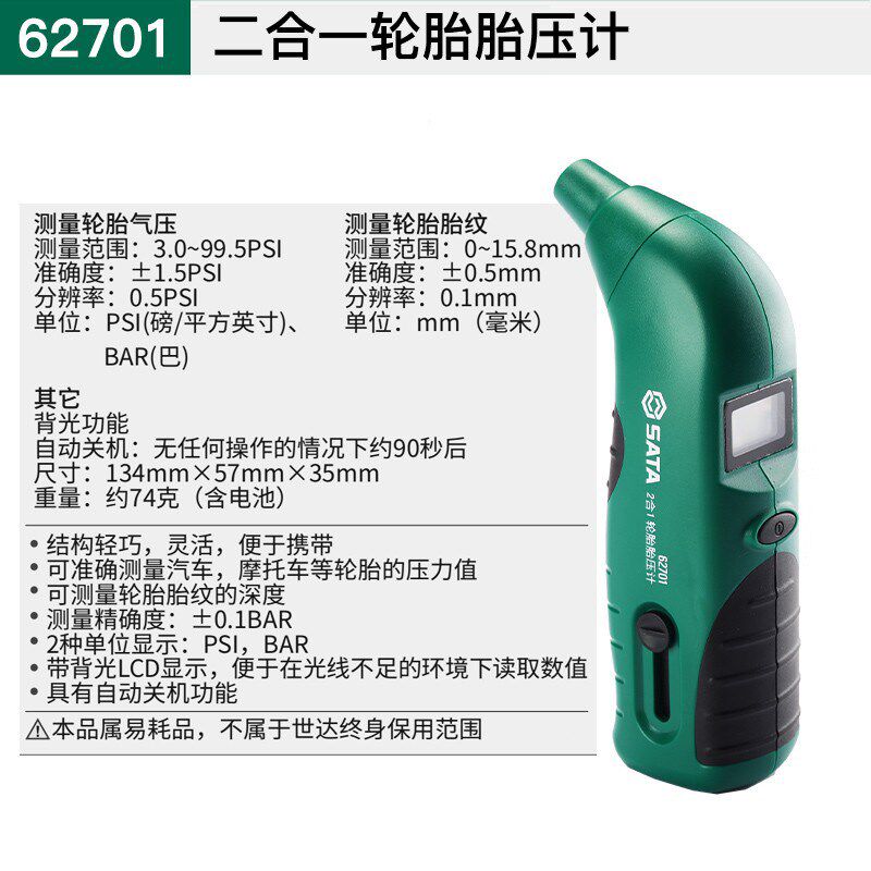 世达二合一胎压计胎压表高精度压力检测数显气压电子轮胎测压力计