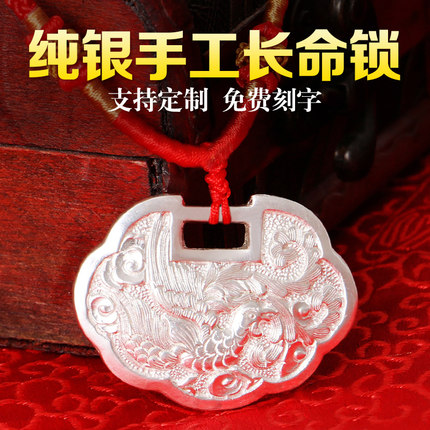 喜鹊银楼 平安锁999纯银长命锁可刻字手工宝宝锁婴儿满月周岁送礼