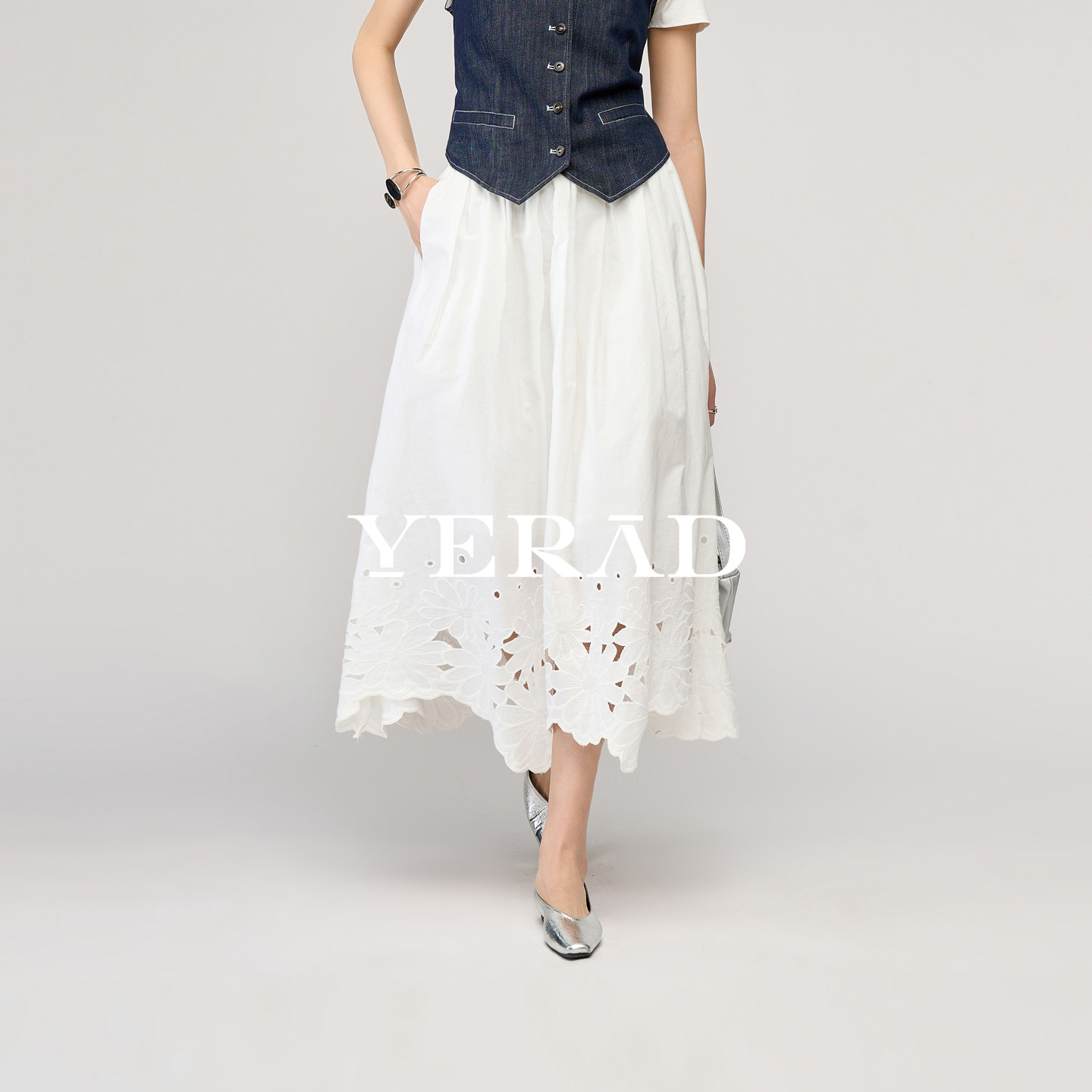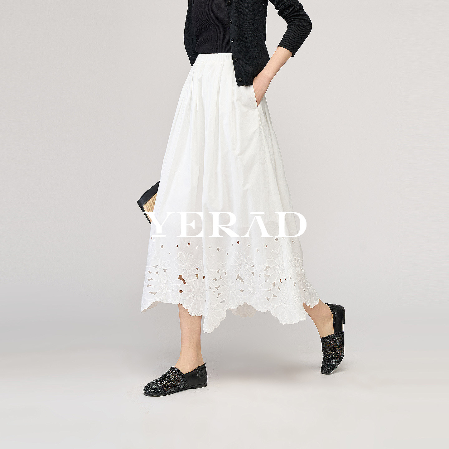 娅丽达小白裙镂空棉感休闲半身裙