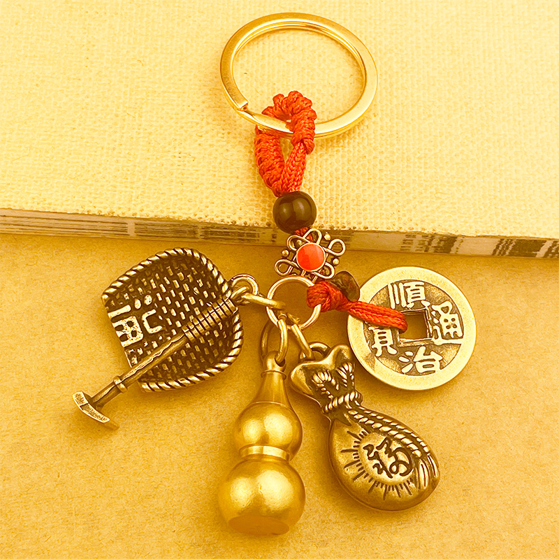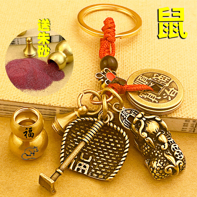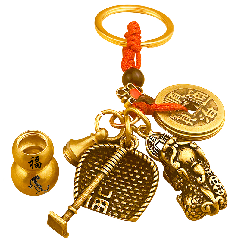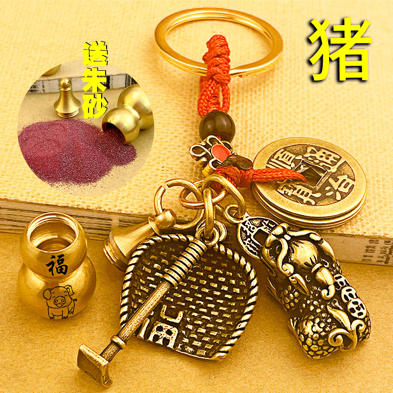 黄铜招财貔貅钥匙扣朱砂葫芦挂件五帝铜钱十二生肖汽车钥匙链男女