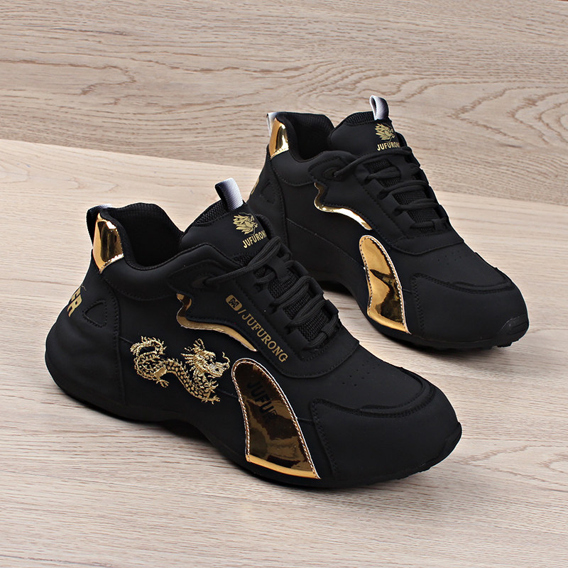 男鞋2025春秋刺绣龙年新款百搭老爹鞋潮运动休闲鞋软底情侣跑步鞋