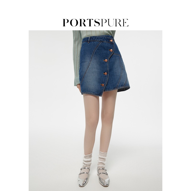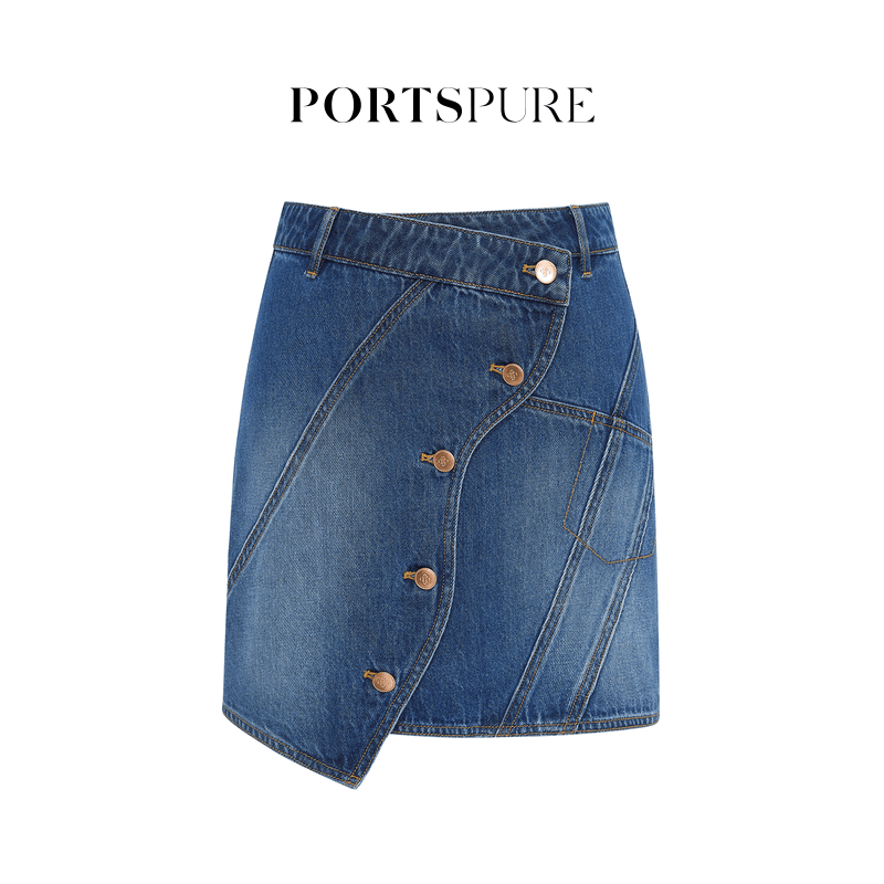 宝姿PORTSPURE女装不规则复古渐变牛仔A字半身裙RT3S202SDC027