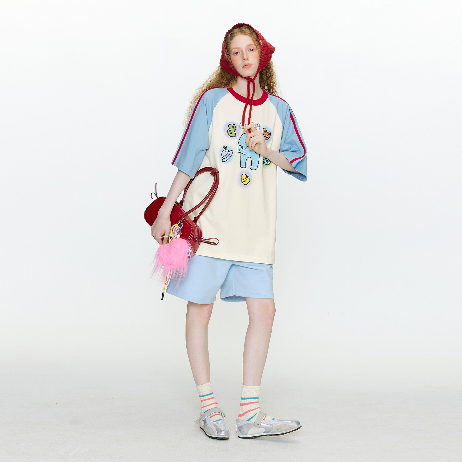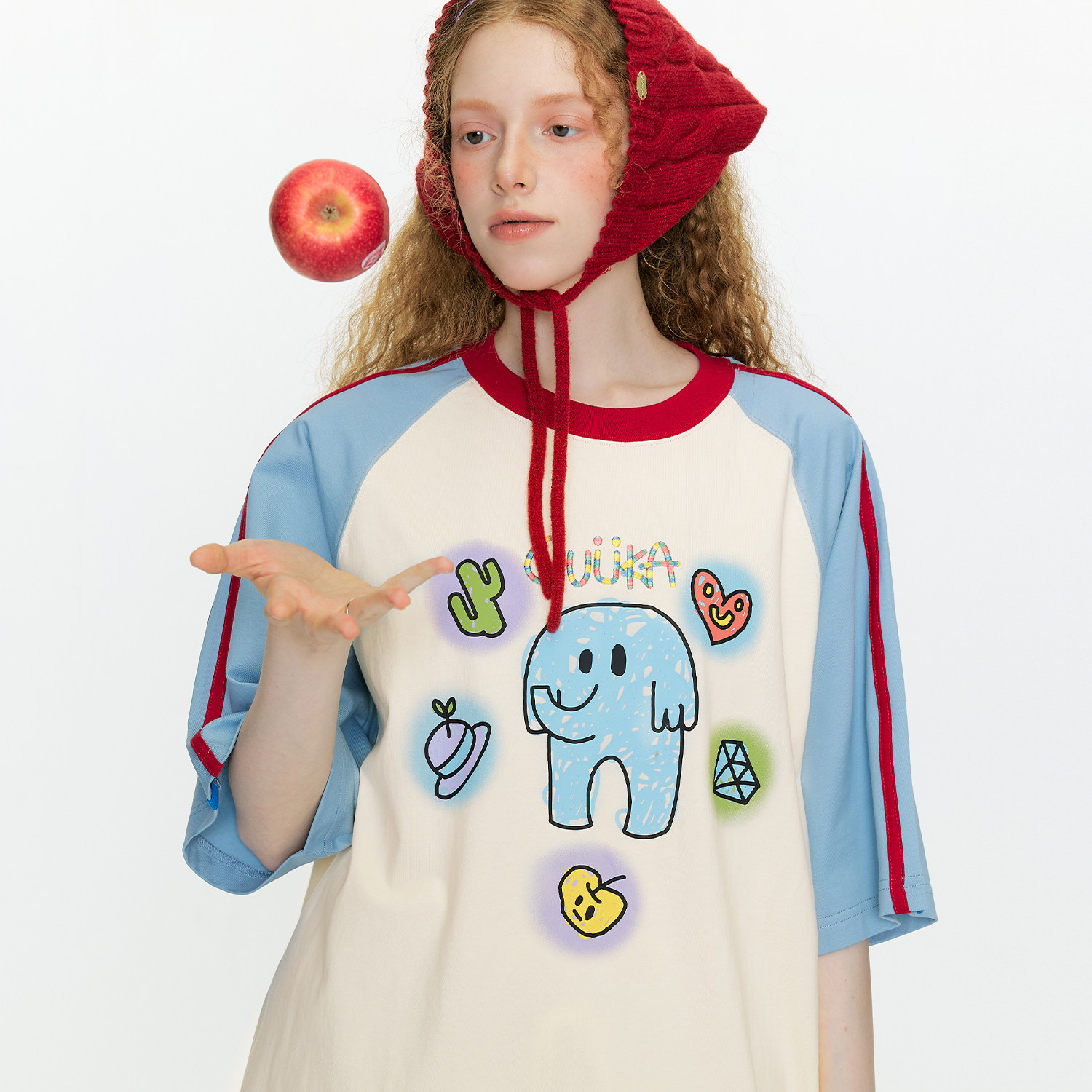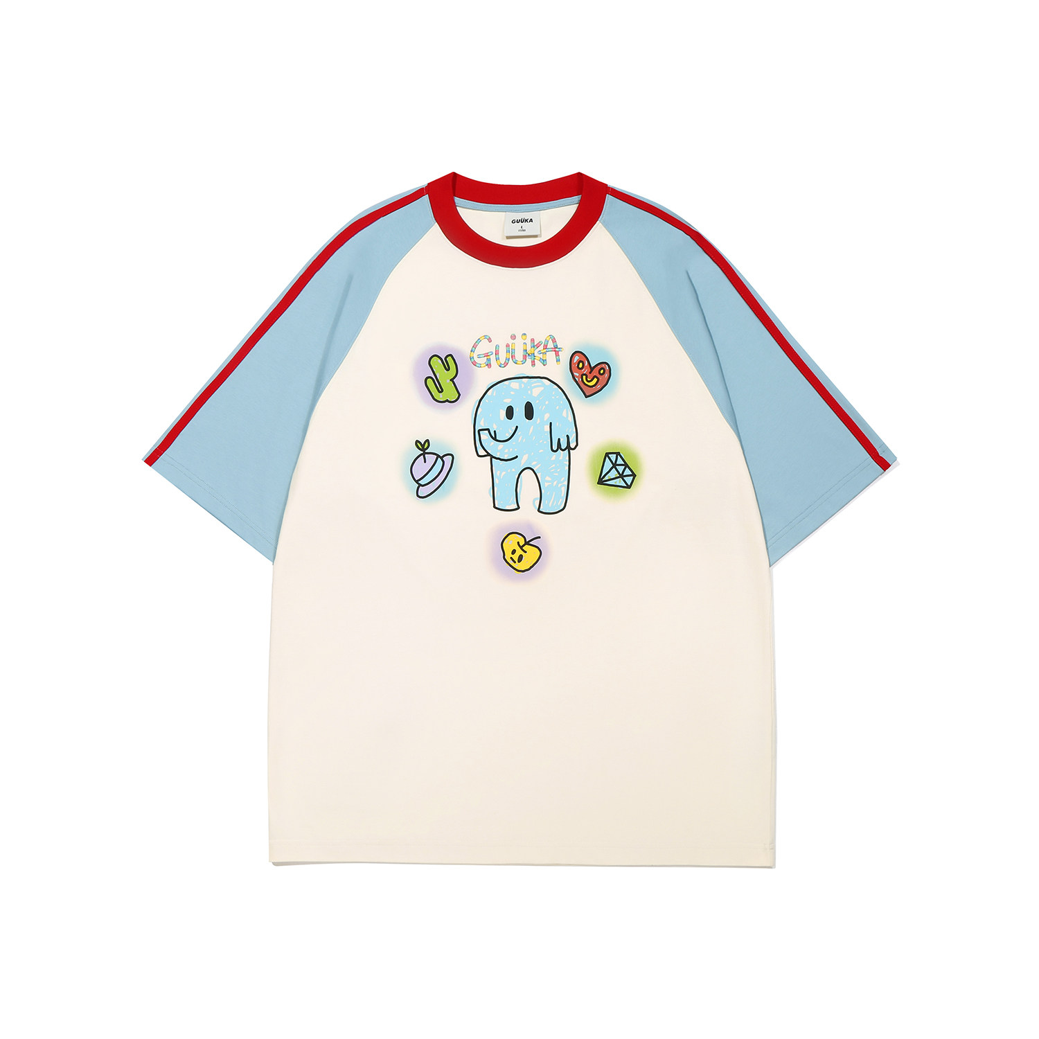 GUUKA潮牌小象短袖T恤男夏撞色拼接条纹半袖重磅纯棉插肩袖上衣女