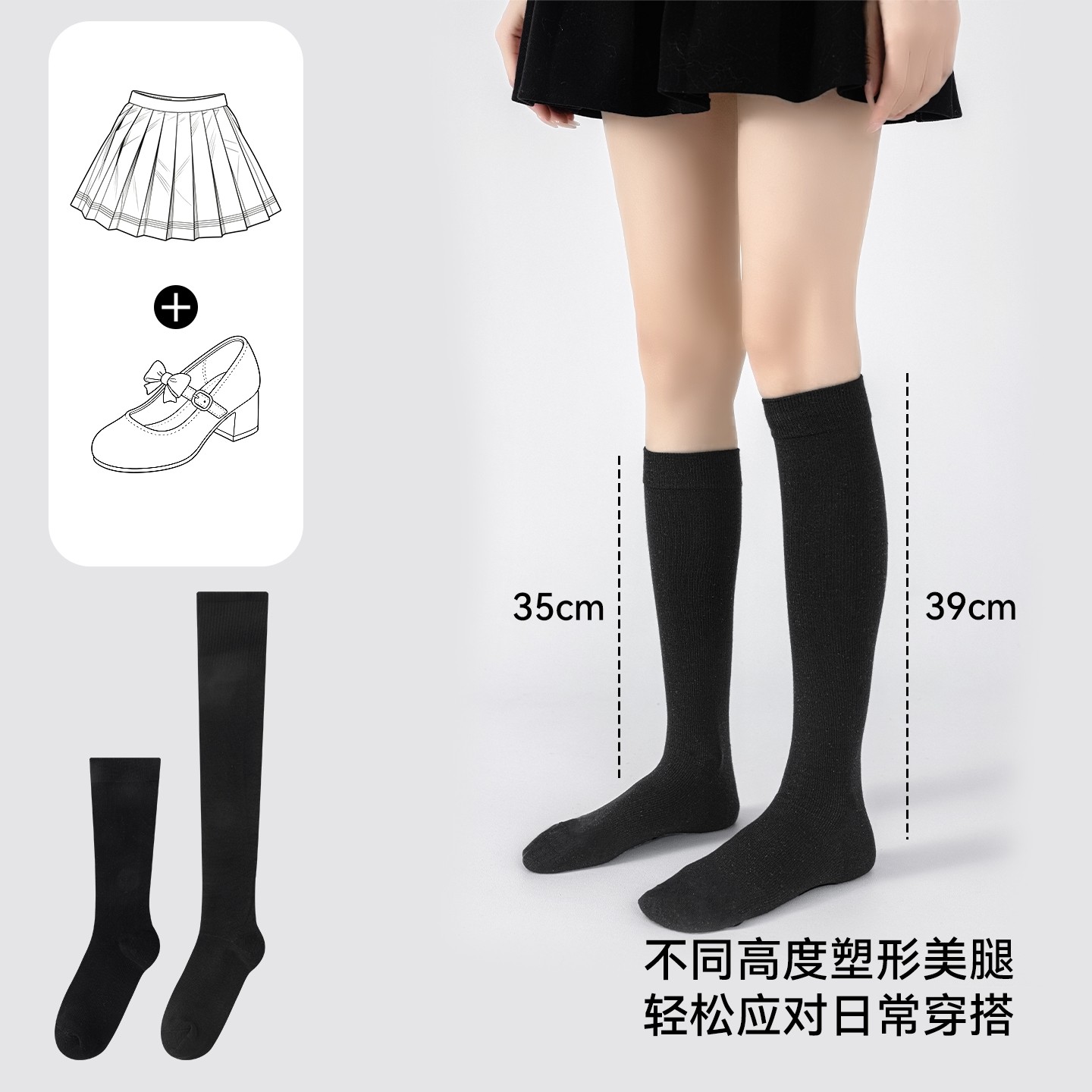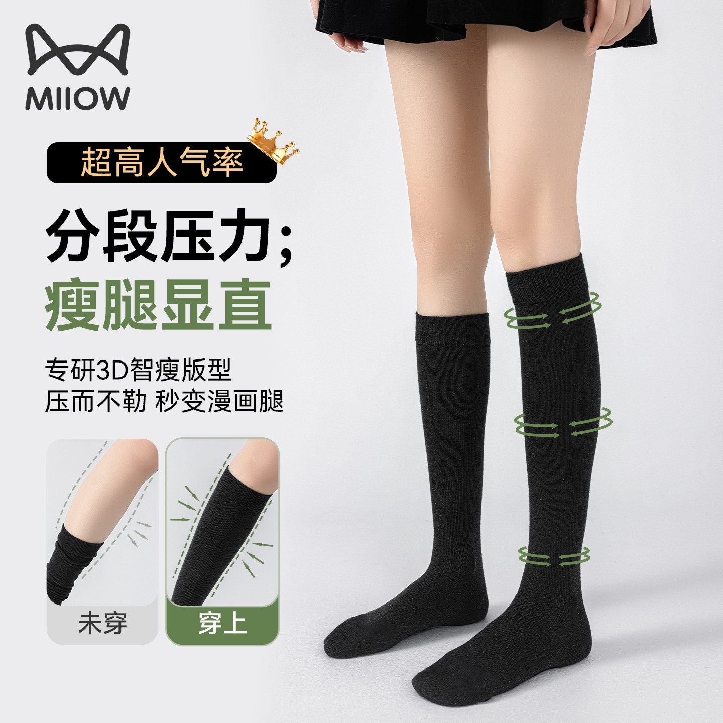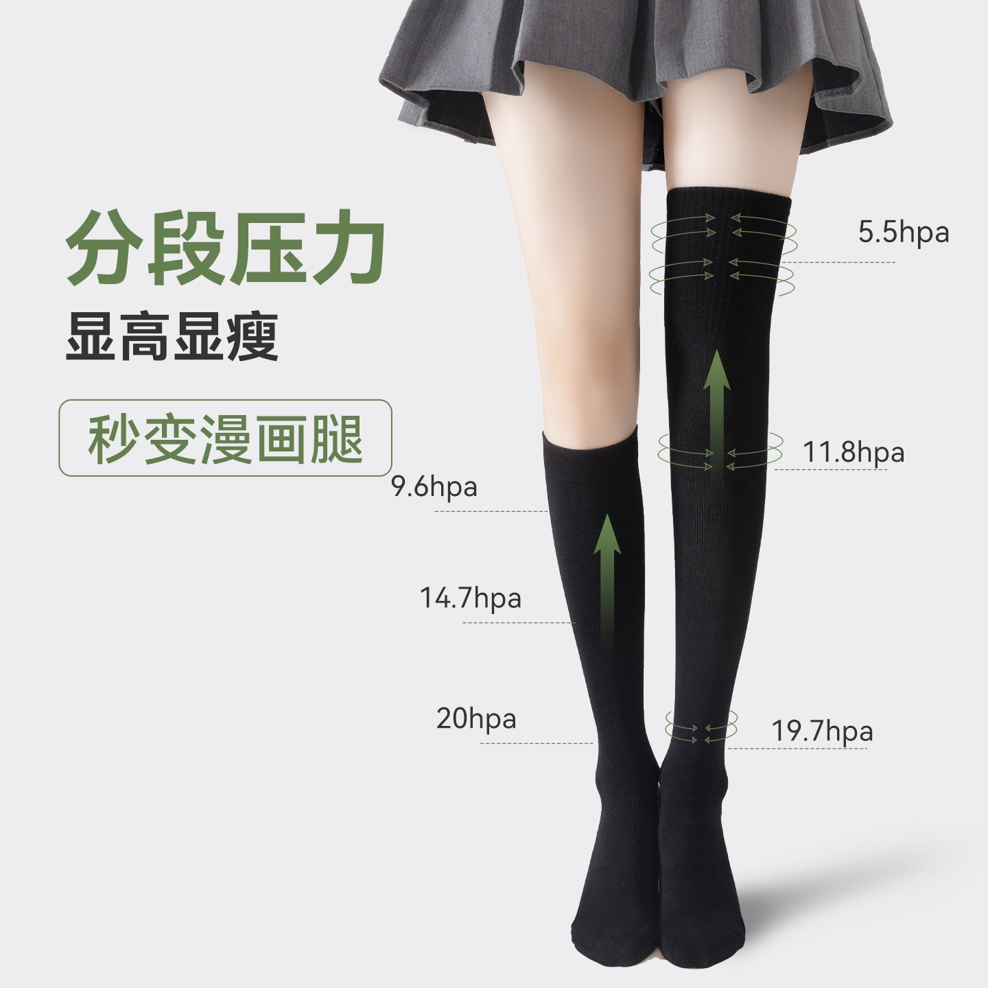 猫人压力小腿袜女强压瘦腿jk袜子大腿袜中筒过膝袜防滑黑色长筒袜