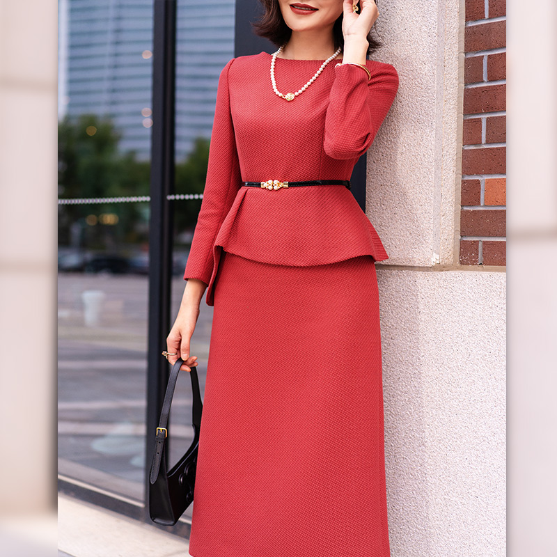 小香风连衣裙女春秋款2025年新款洋气气质修身显瘦长袖裙子假两件