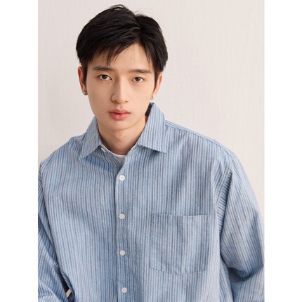 可乐生活CARPEM秋季亚麻混纺日系宽松简约条纹复古文艺长袖衬衫男