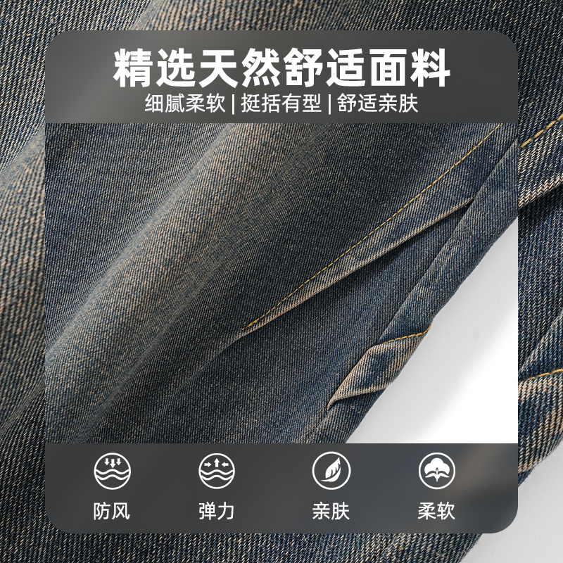 查尔斯桃心美式牛仔裤男秋冬季潮牌直筒加绒加厚阔腿微喇休闲长裤