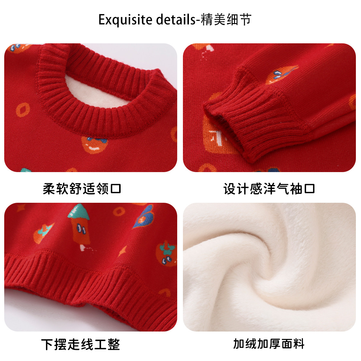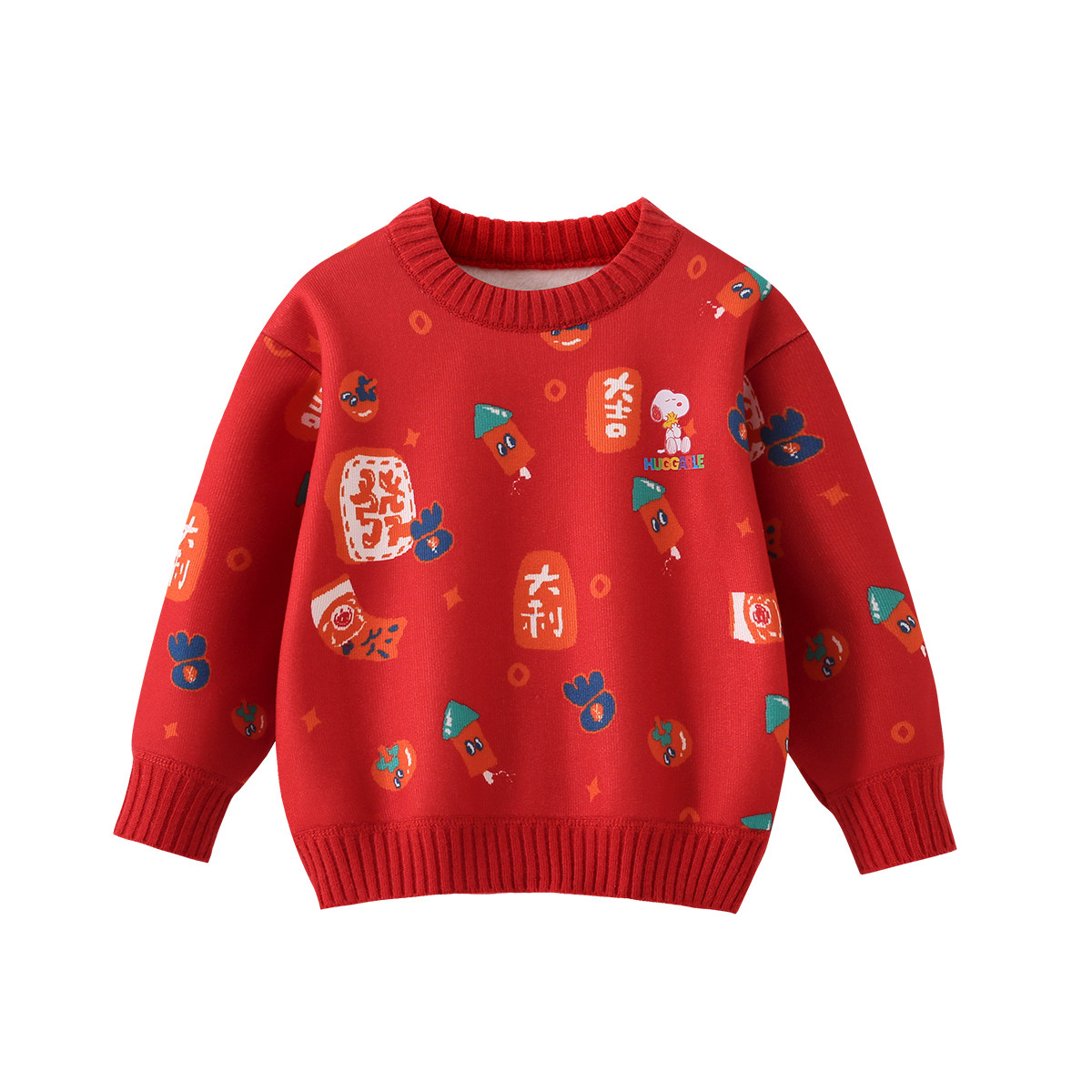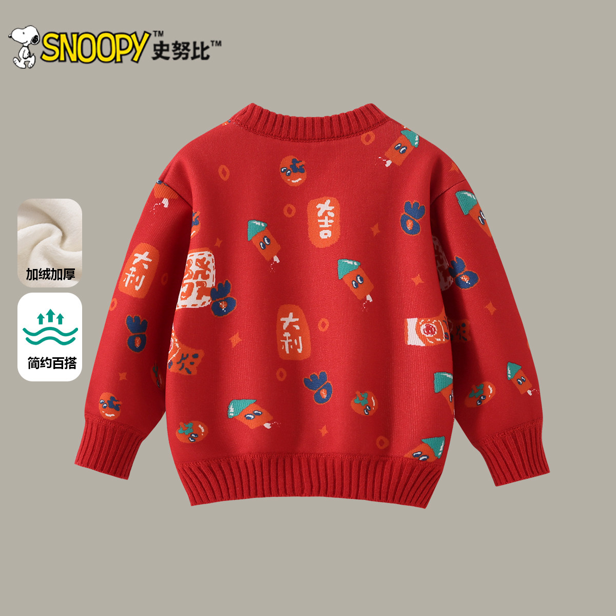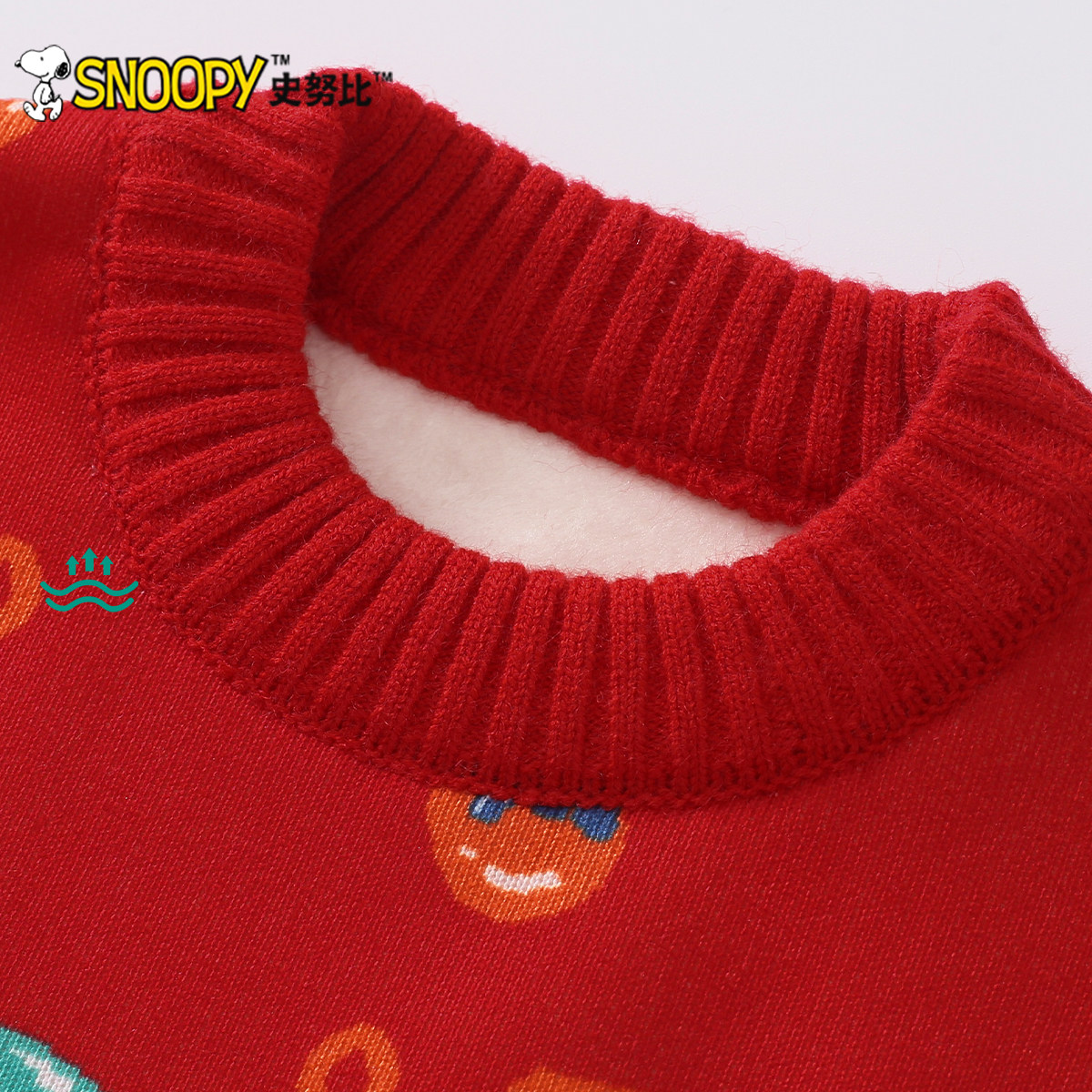 史努比女童秋冬毛衣2025新款儿童红色新年款针织衫男童冬季拜年服
