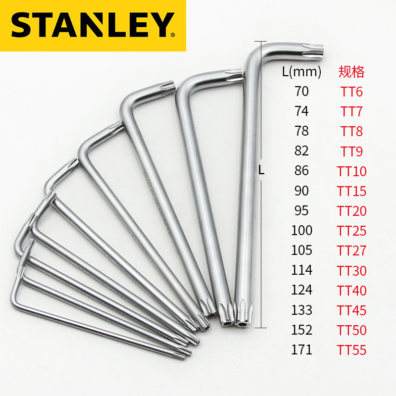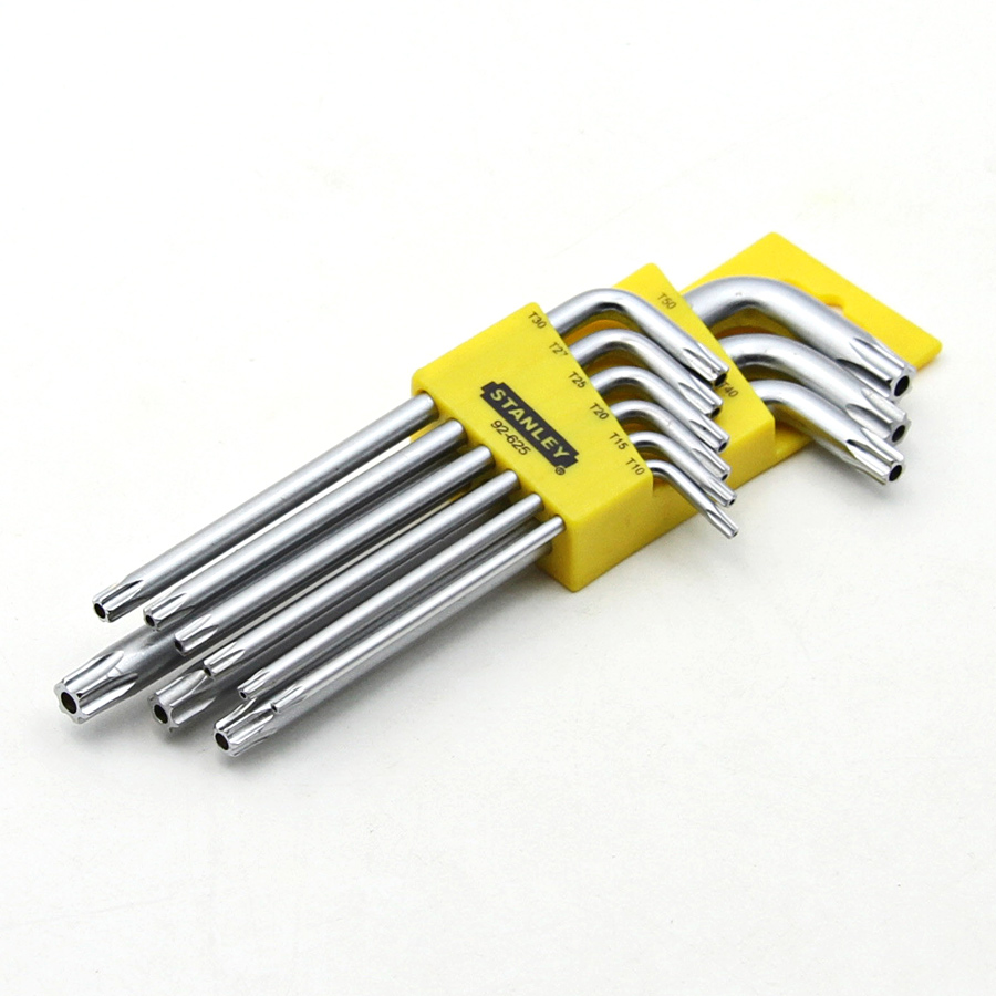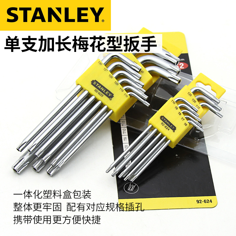史丹利加长梅花型内六角扳手套装带中孔9件套T20防盗L型螺丝刀7字