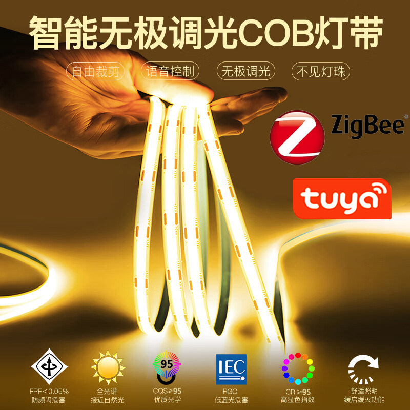 tuya智能涂鸦zigbee灯带24V低压自粘软灯条三线COB灯条无频闪客厅