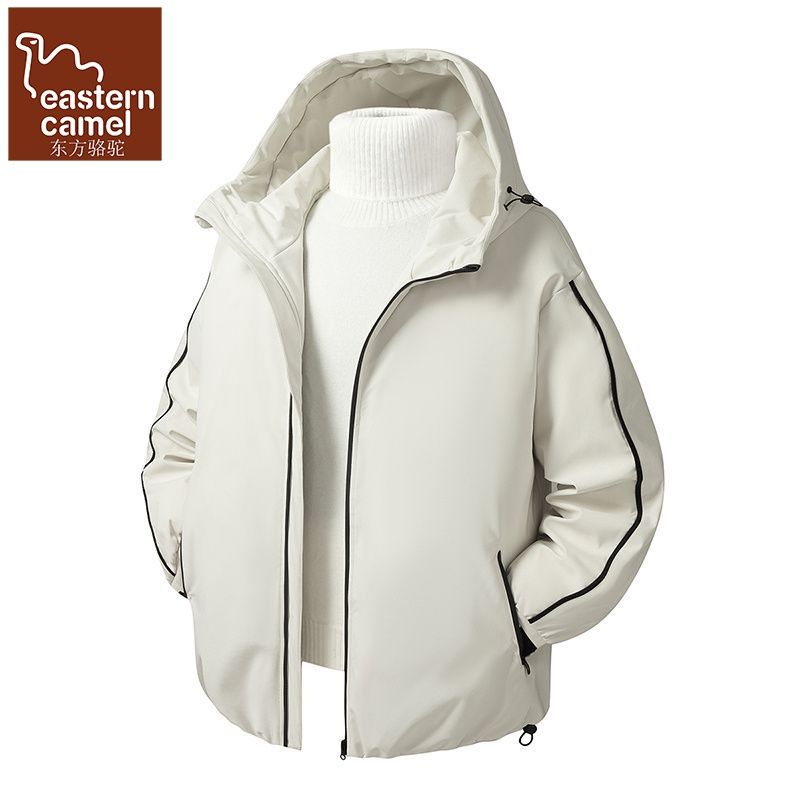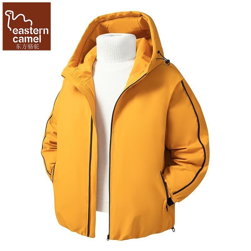 国潮美式侧边条纹连帽羽绒服男女冬季情侣款宽松百搭鸭绒防寒外套