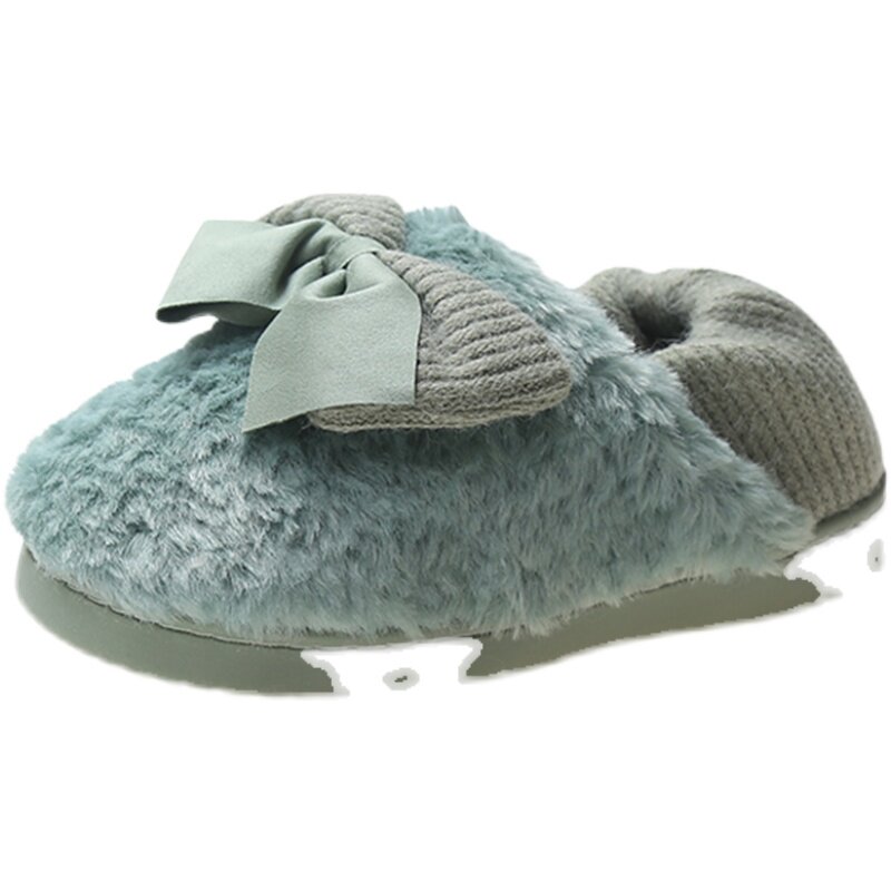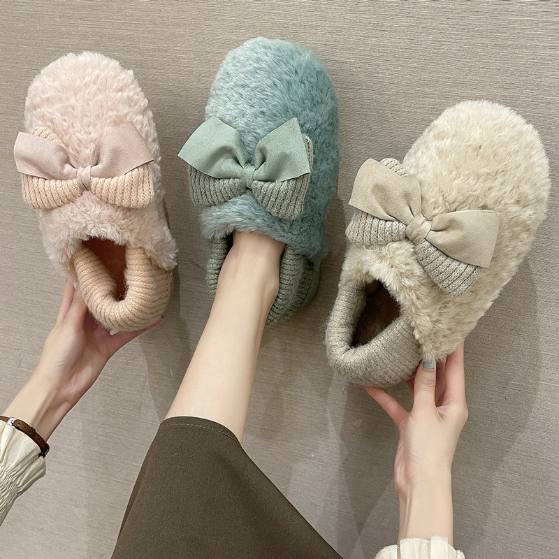 棉拖鞋女秋冬季防滑室内家用保暖可爱蝴蝶结毛毛绒棉拖厚底女秋冬