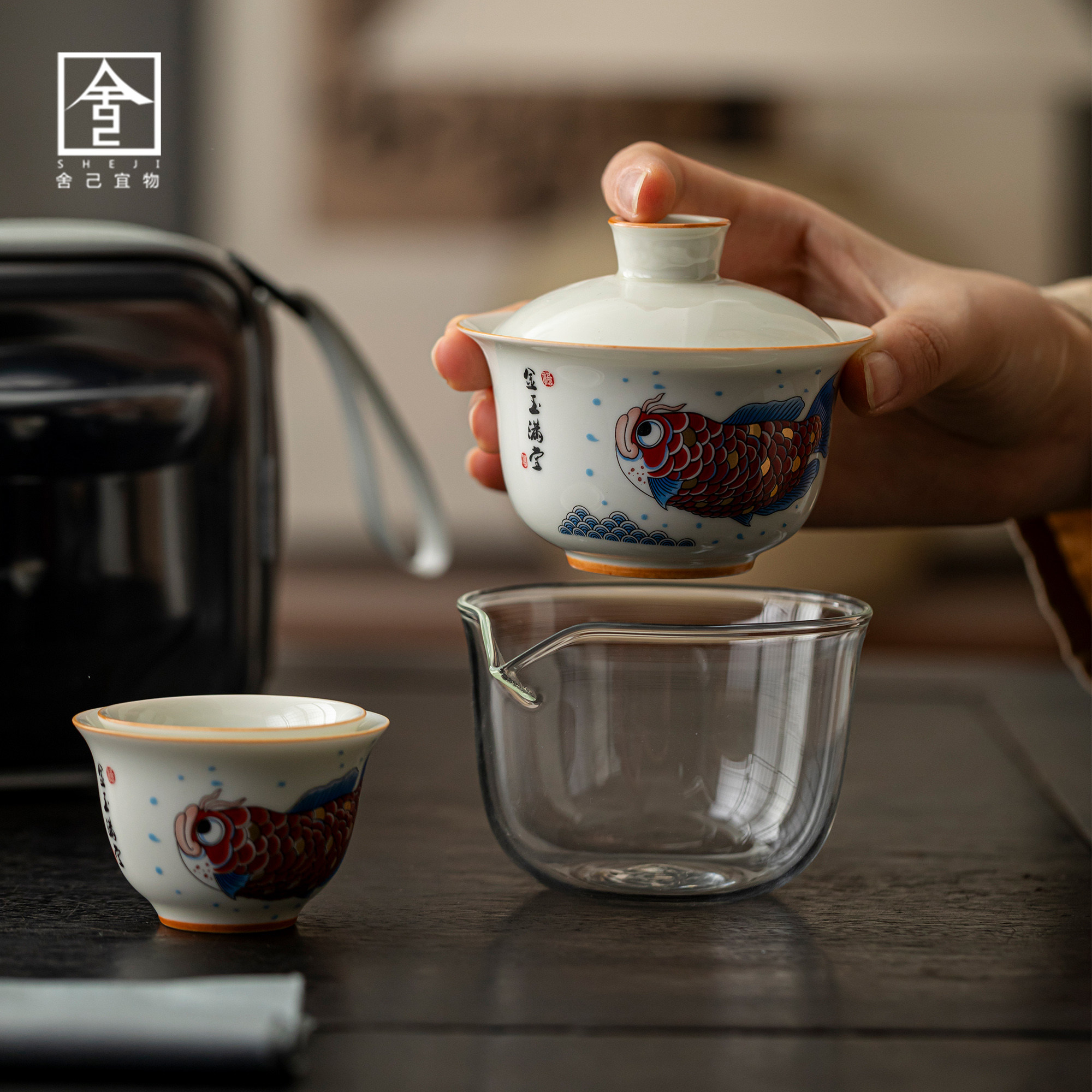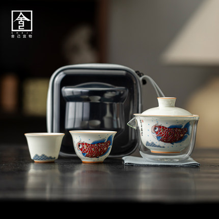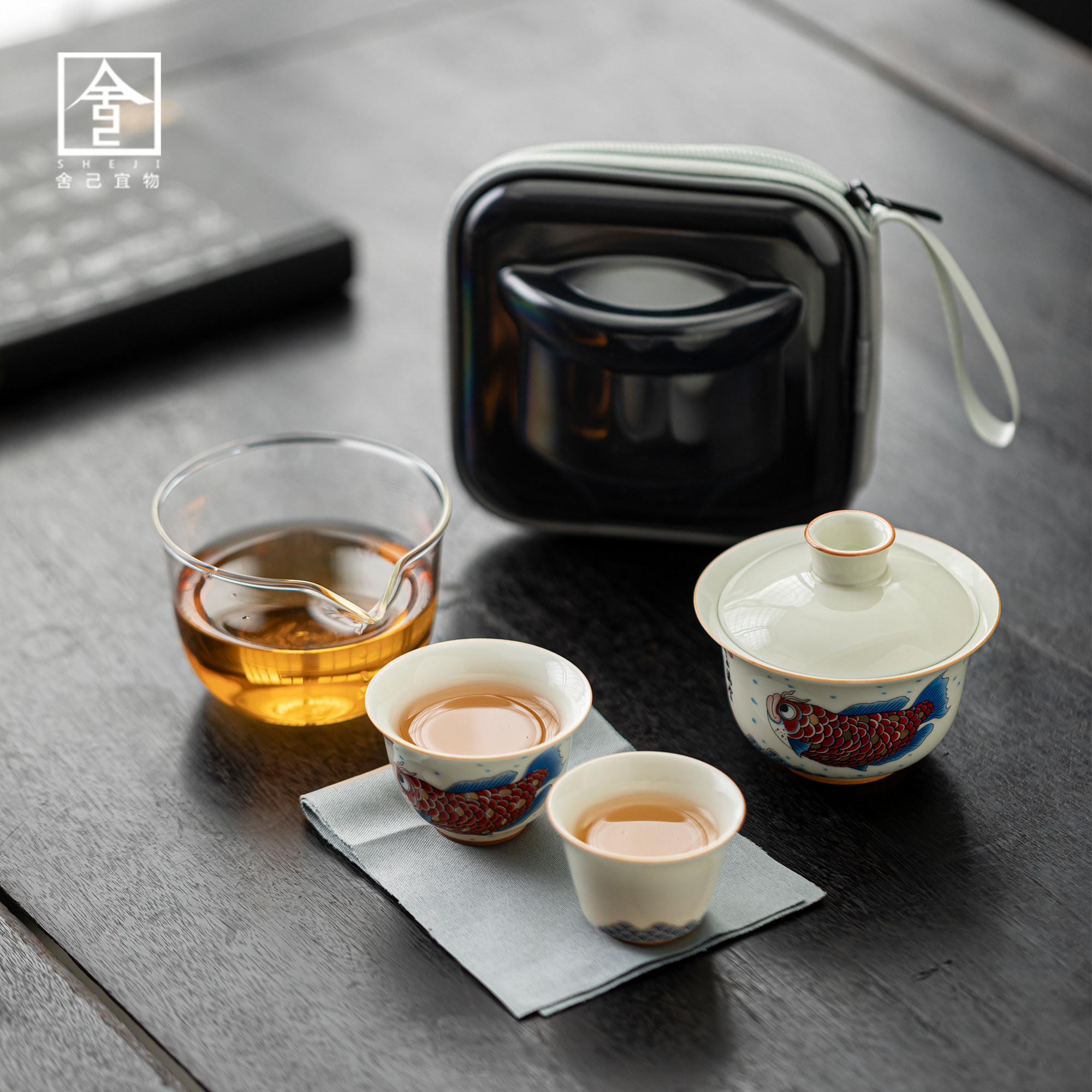 便捷式茶具套装盖碗茶杯1壶2杯旅行茶具户外喝茶泡茶专用功夫茶具