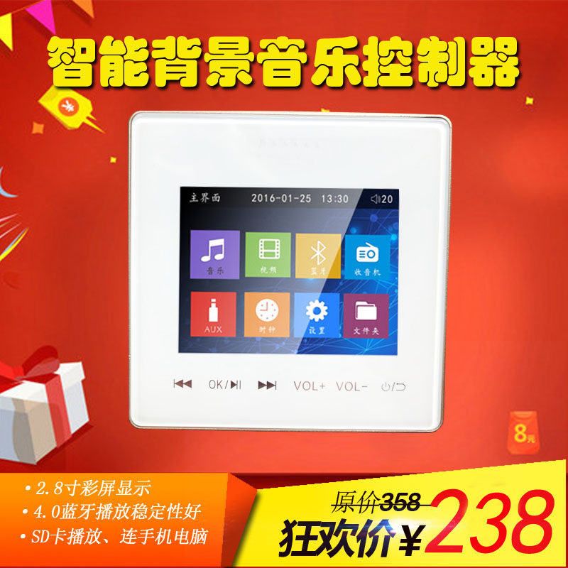 背景音乐主机系统家庭酒店墙上安装8型面板功放定阻吸顶音响