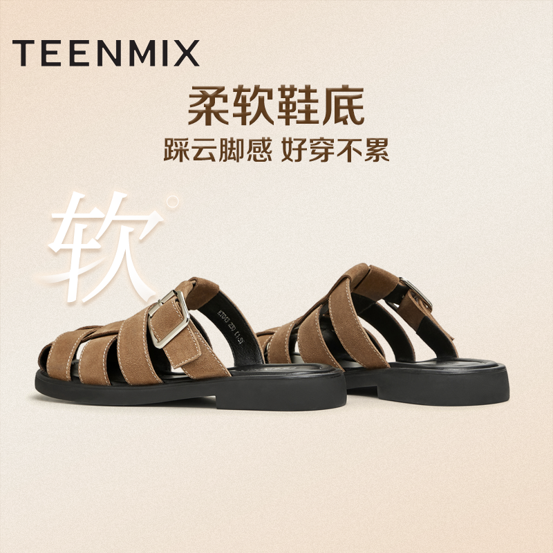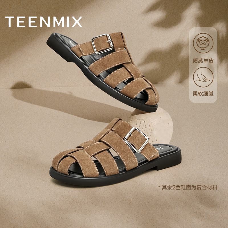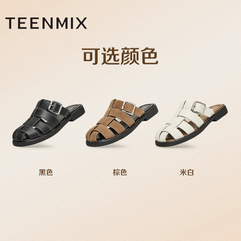 短头花推荐天美意穆勒鞋包头半拖鞋女外穿凉拖罗马凉鞋夏新款