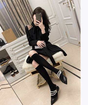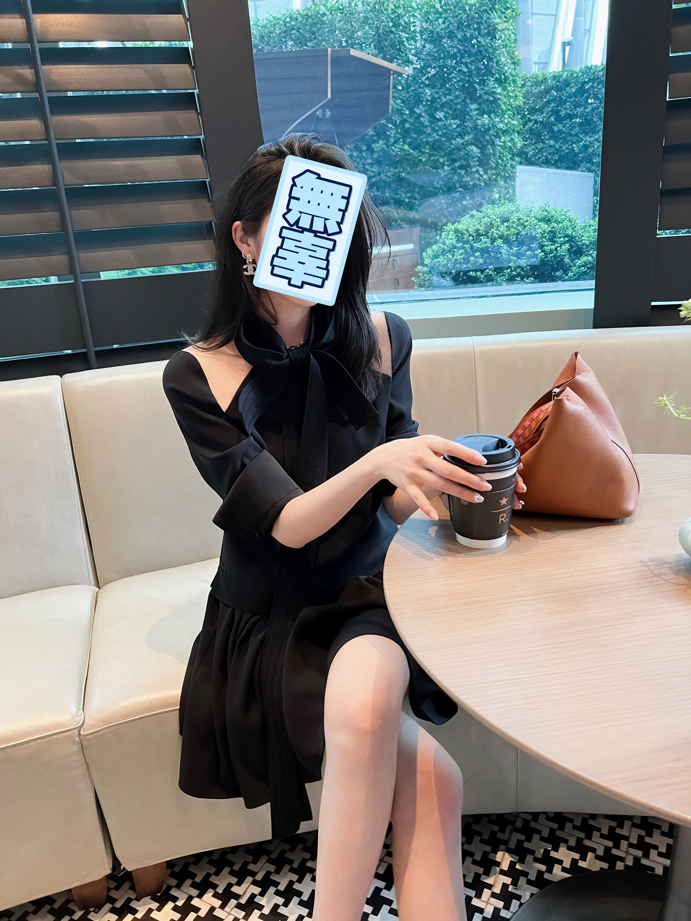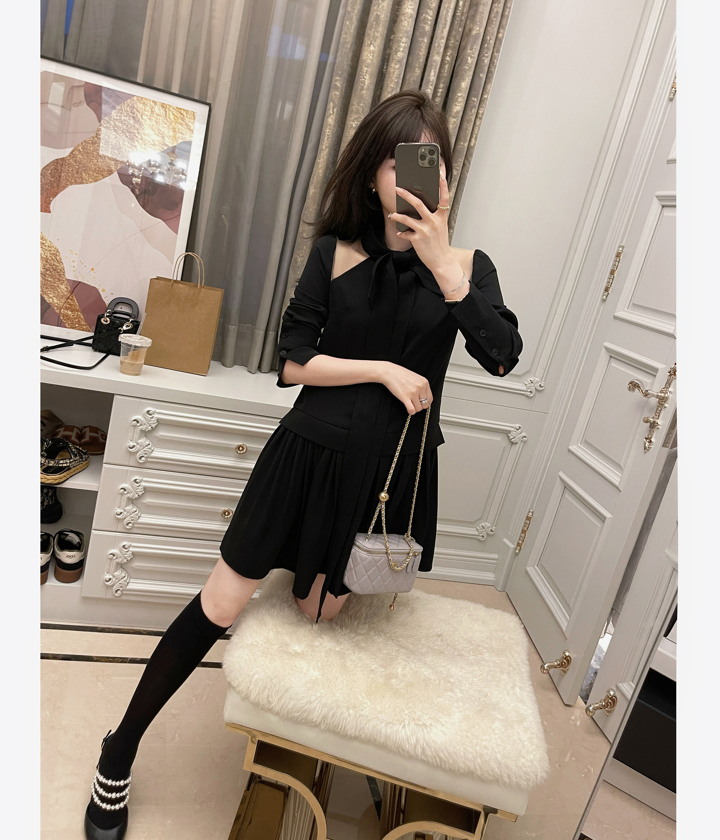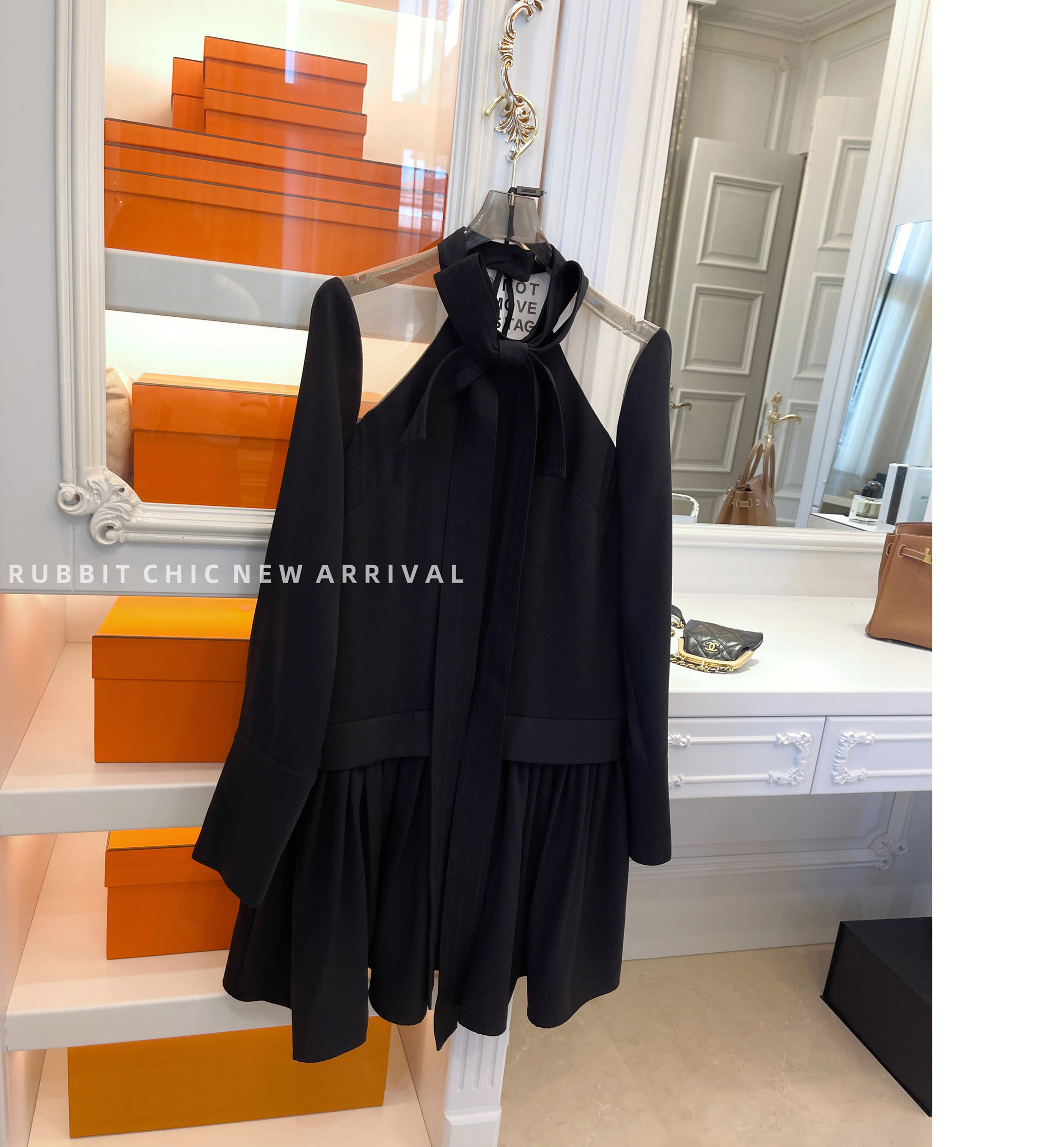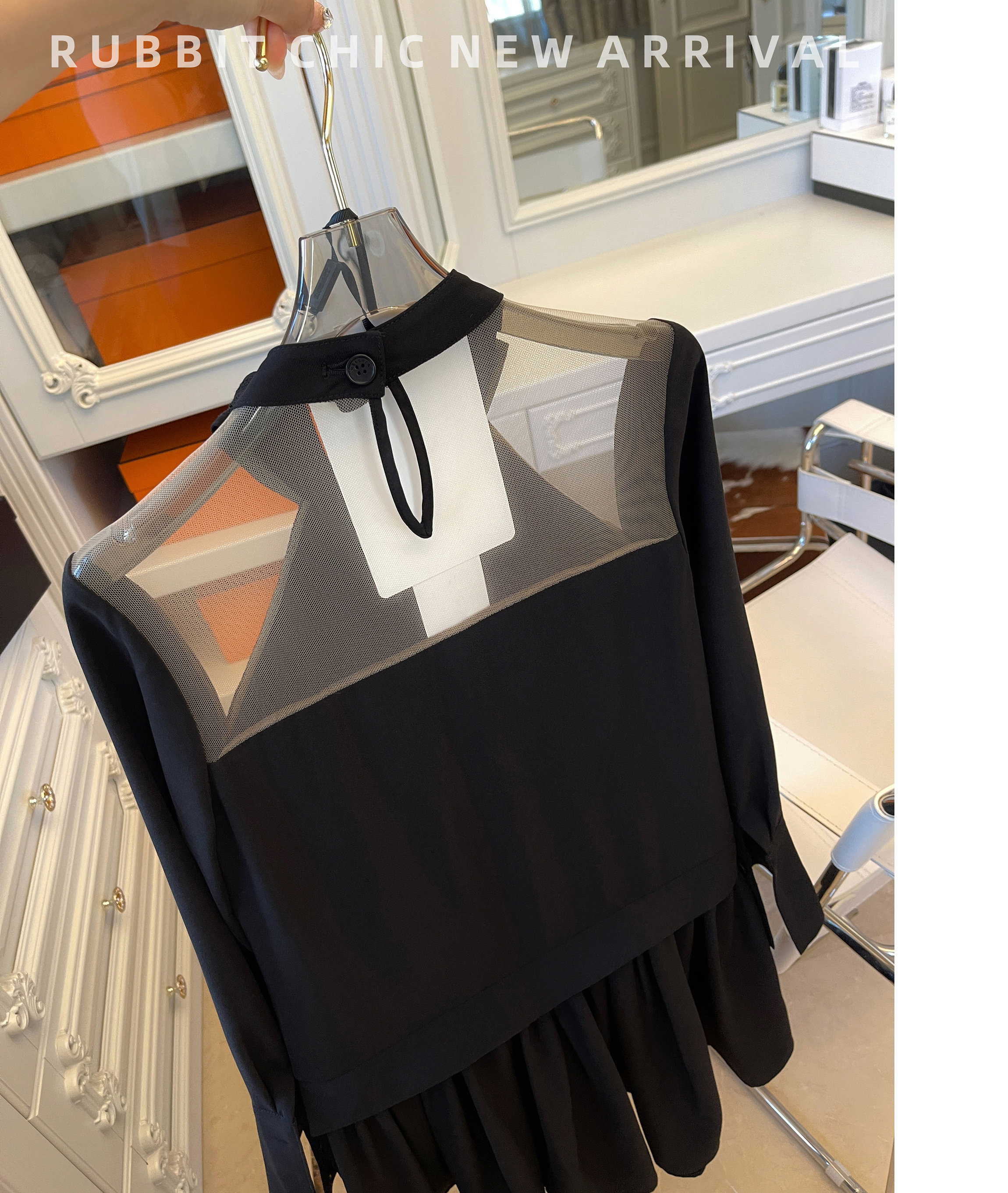 RUBBIT秋季新品 精致飘逸蝴蝶结中长裙子 网纱拼接真丝醋酸连衣裙