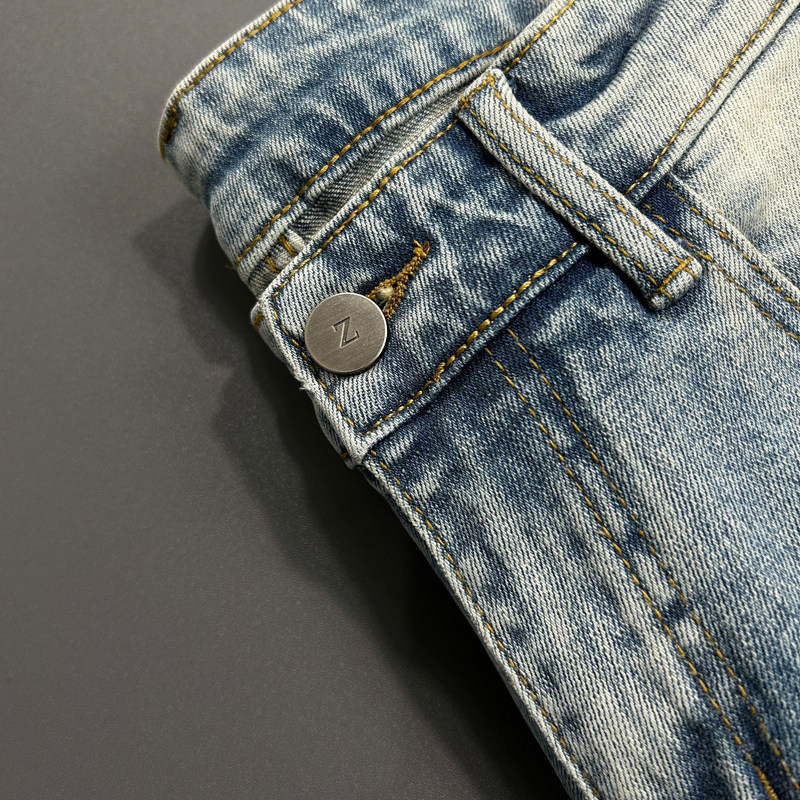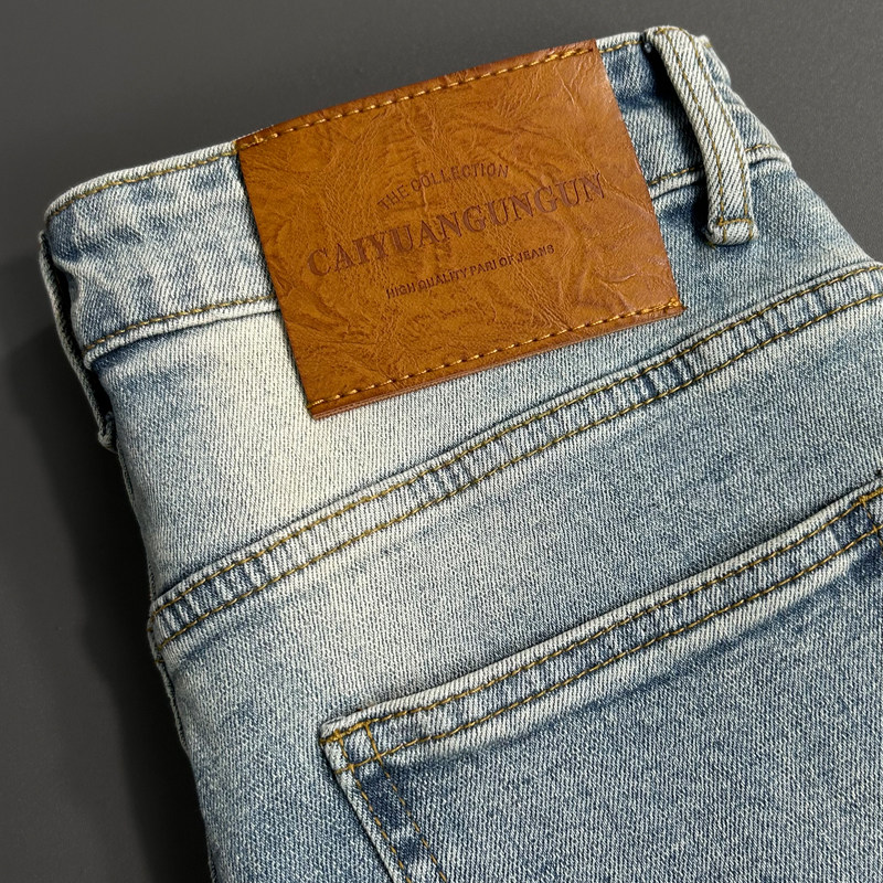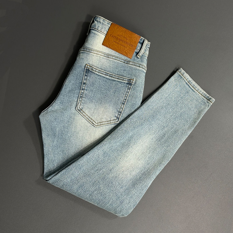 弹力做旧浅蓝色修身九分牛仔裤男士韩版简约百搭舒适休闲小脚裤男