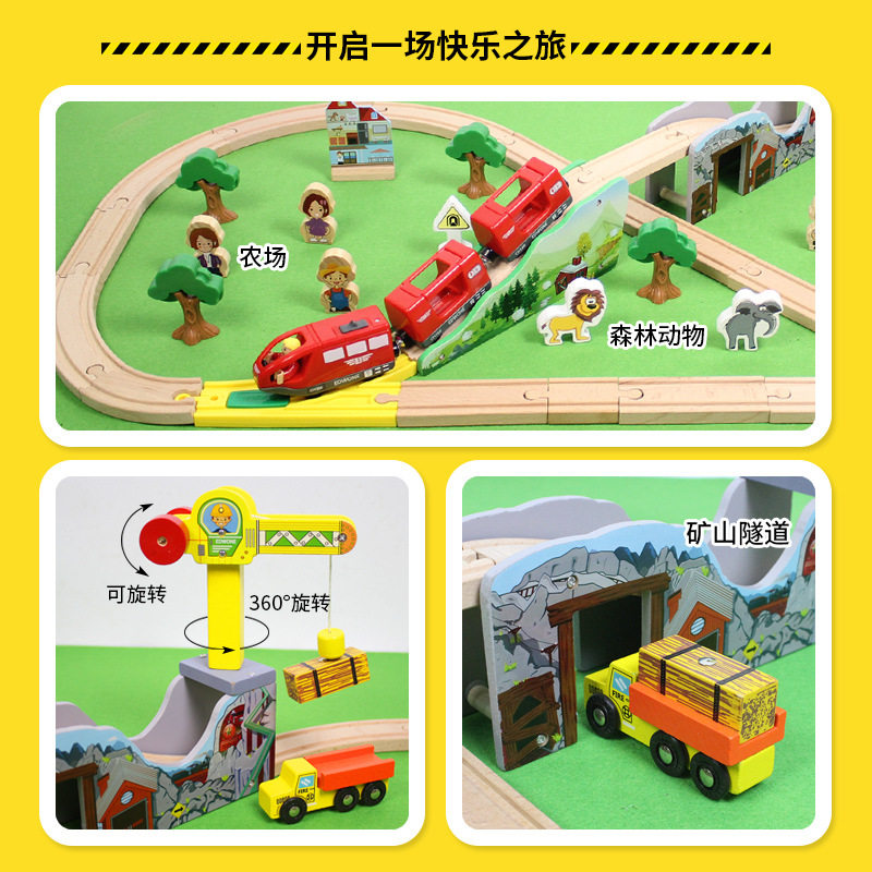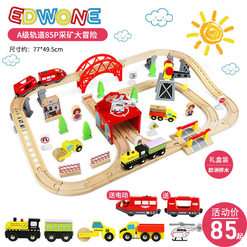 EDWONE木质轨道小火车电动采矿大冒险轨道车玩具儿童益智生日礼物