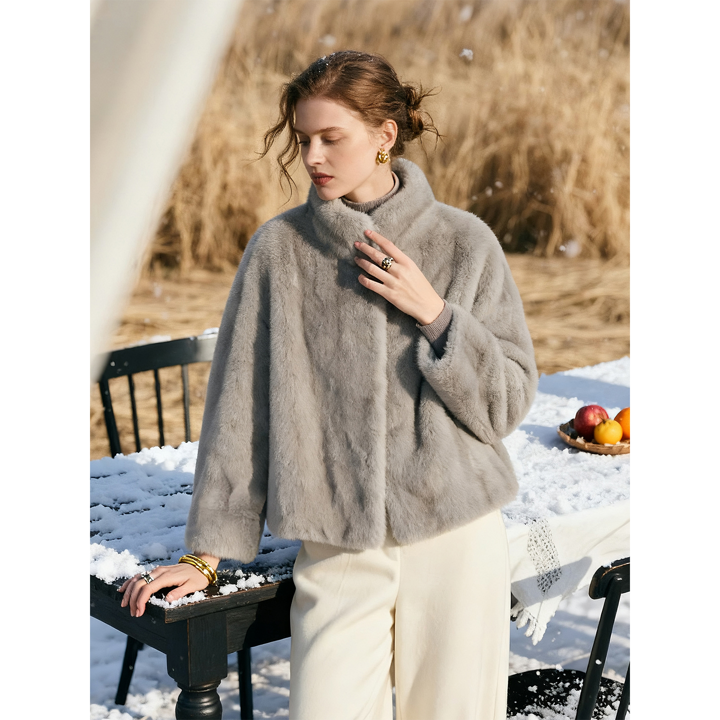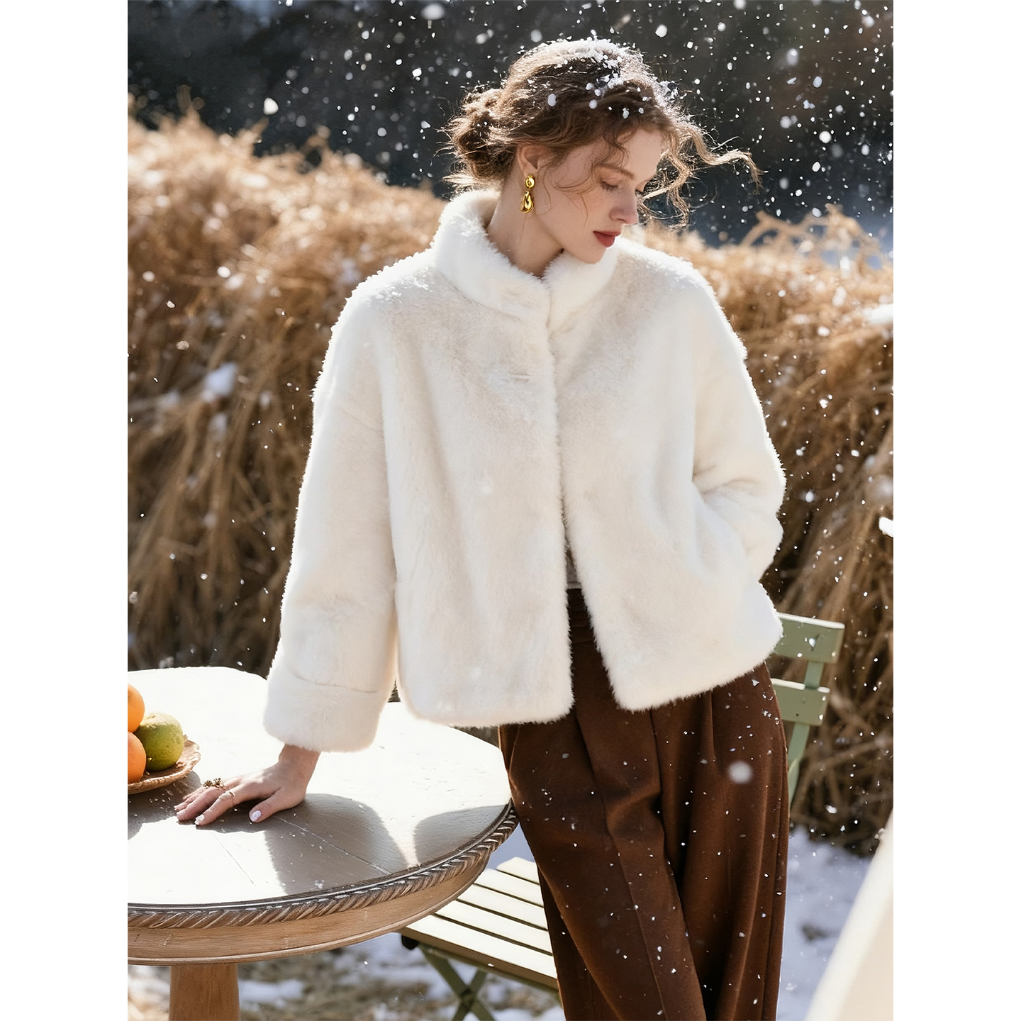 咖色仿水貂毛环保皮草外套女2025年秋冬新款高级感时尚短款上衣