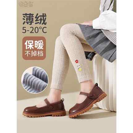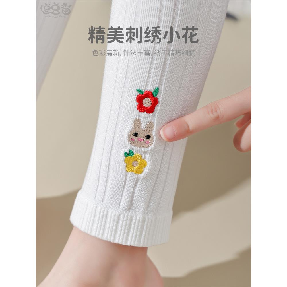 女童打底裤春秋季薄绒儿童九分裤可爱刺绣宝宝裤子外穿中大童长裤