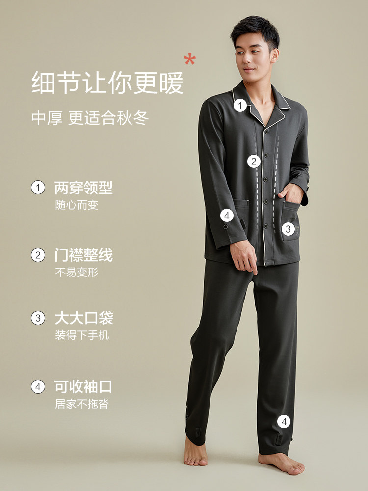 恒源祥睡衣男士纯棉长袖秋冬季全棉休闲可外穿新款男生家居服套装