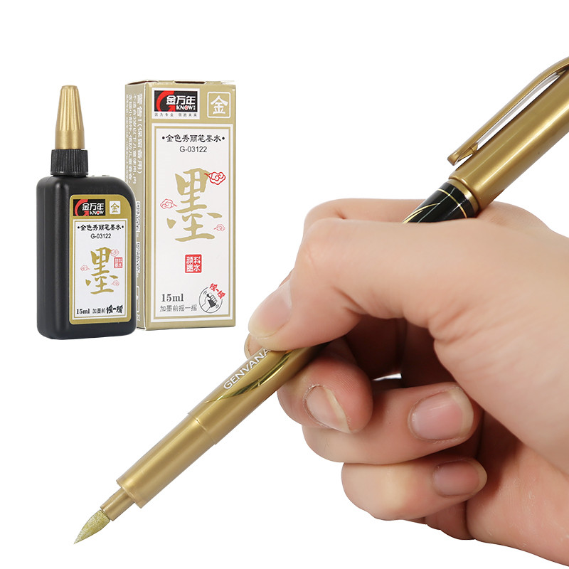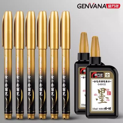 金色秀丽笔大楷软笔软头毛笔书法笔金墨笔请柬烫金笔鎏金笔金字笔