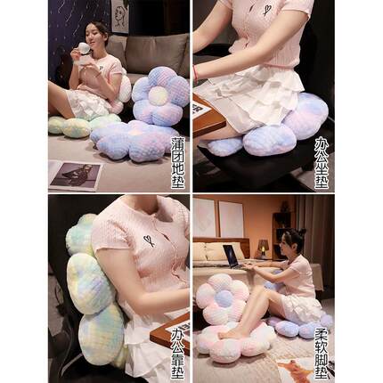 秋冬季兔毛绒花朵坐垫办公室久坐椅子垫学生屁垫板凳子餐椅座垫