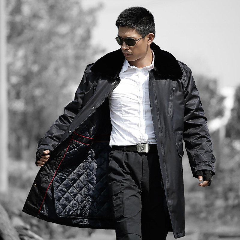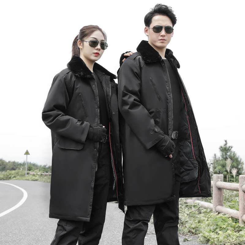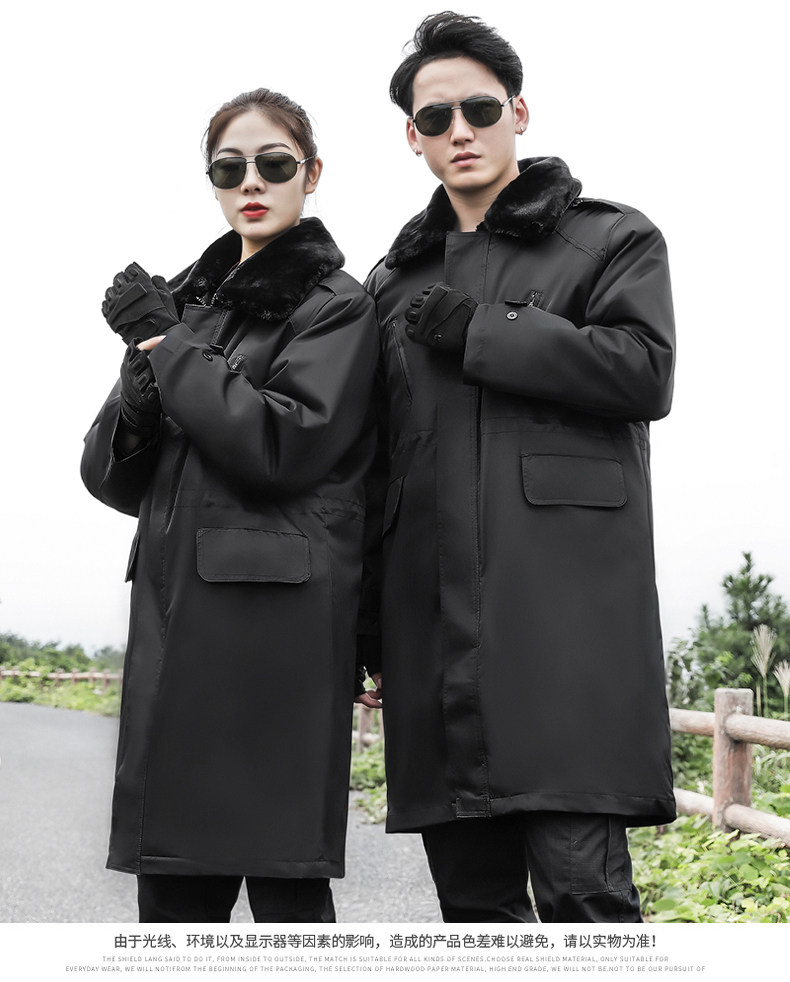 盾郎军大衣男女冬季加厚保暖防寒服黑色棉衣可拆洗毛领长款棉袄