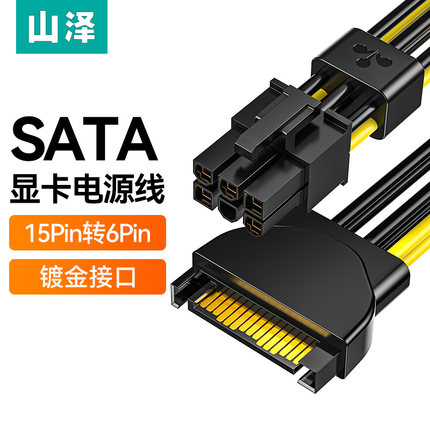山泽sata线15p转6pin反向转接线台式电脑主机外接连6针显卡电源线