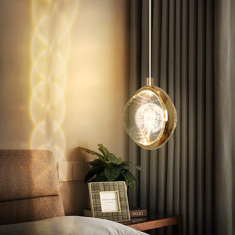 2025年新款全光谱3D水晶球小吊灯客厅背景墙网红轻奢卧室床头灯具