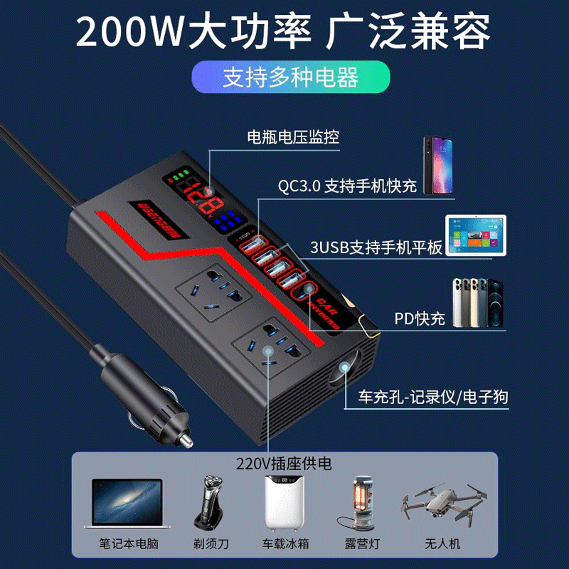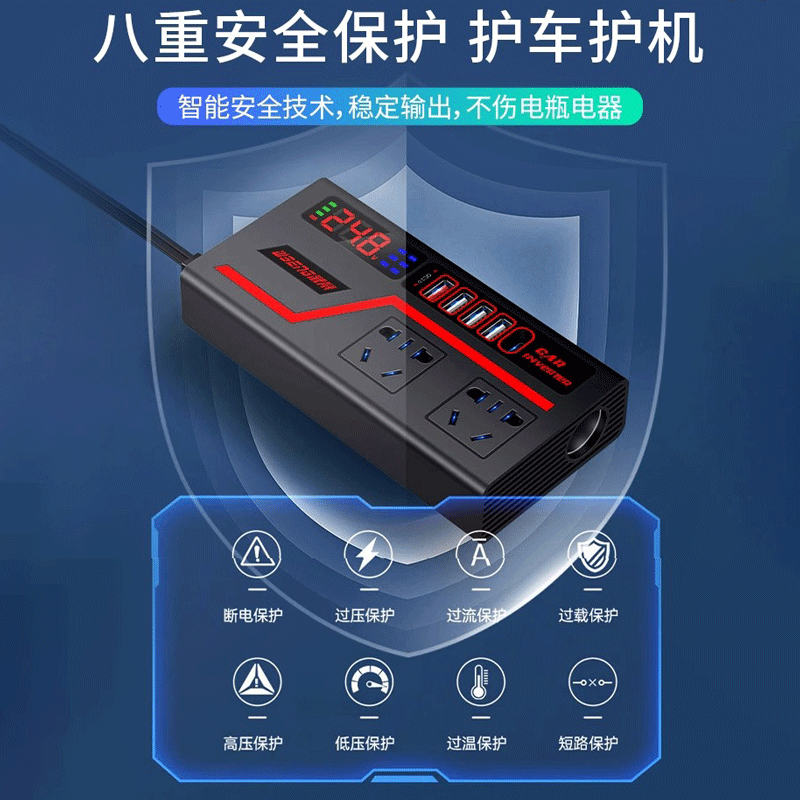 车载逆变转换器转220v12v24v大功率多功能充电点烟器快充电源插座