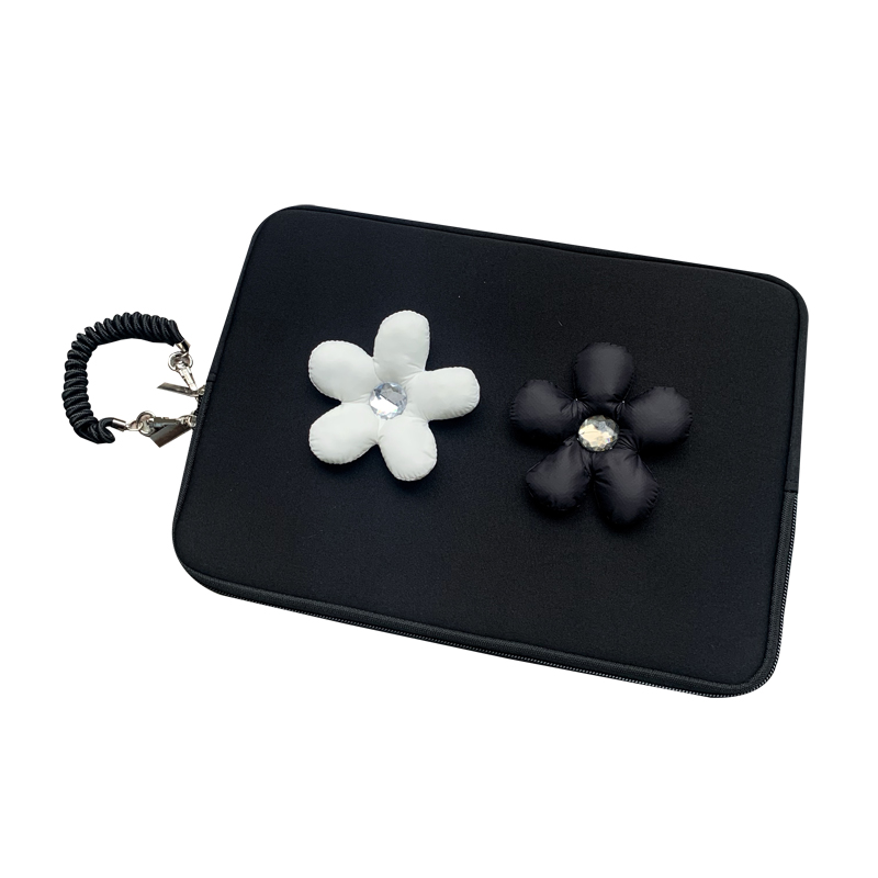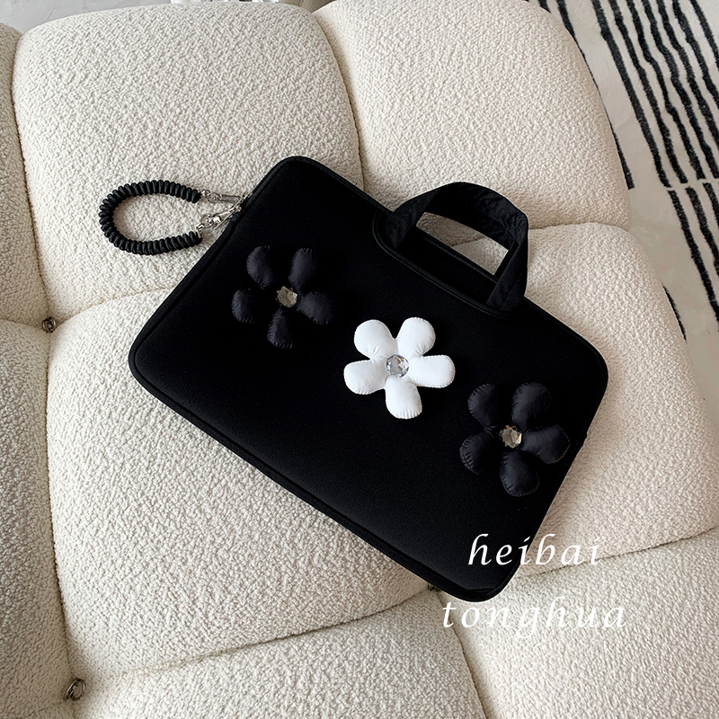 原创ins高级感小众设计黑白花朵平板包ipad11寸可爱羽绒花朵笔记本电脑收纳包适用苹果mac13.3/16寸