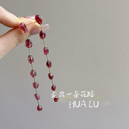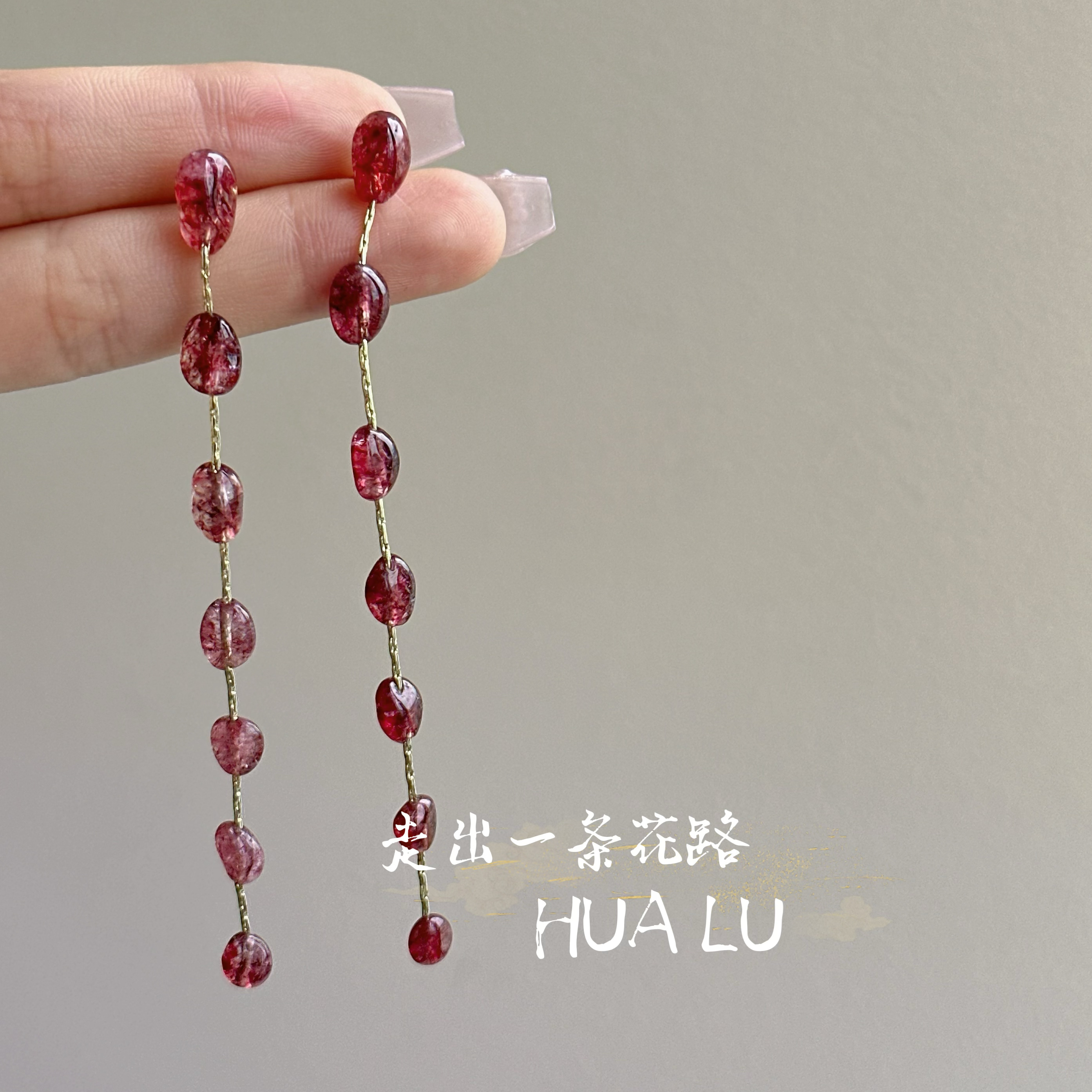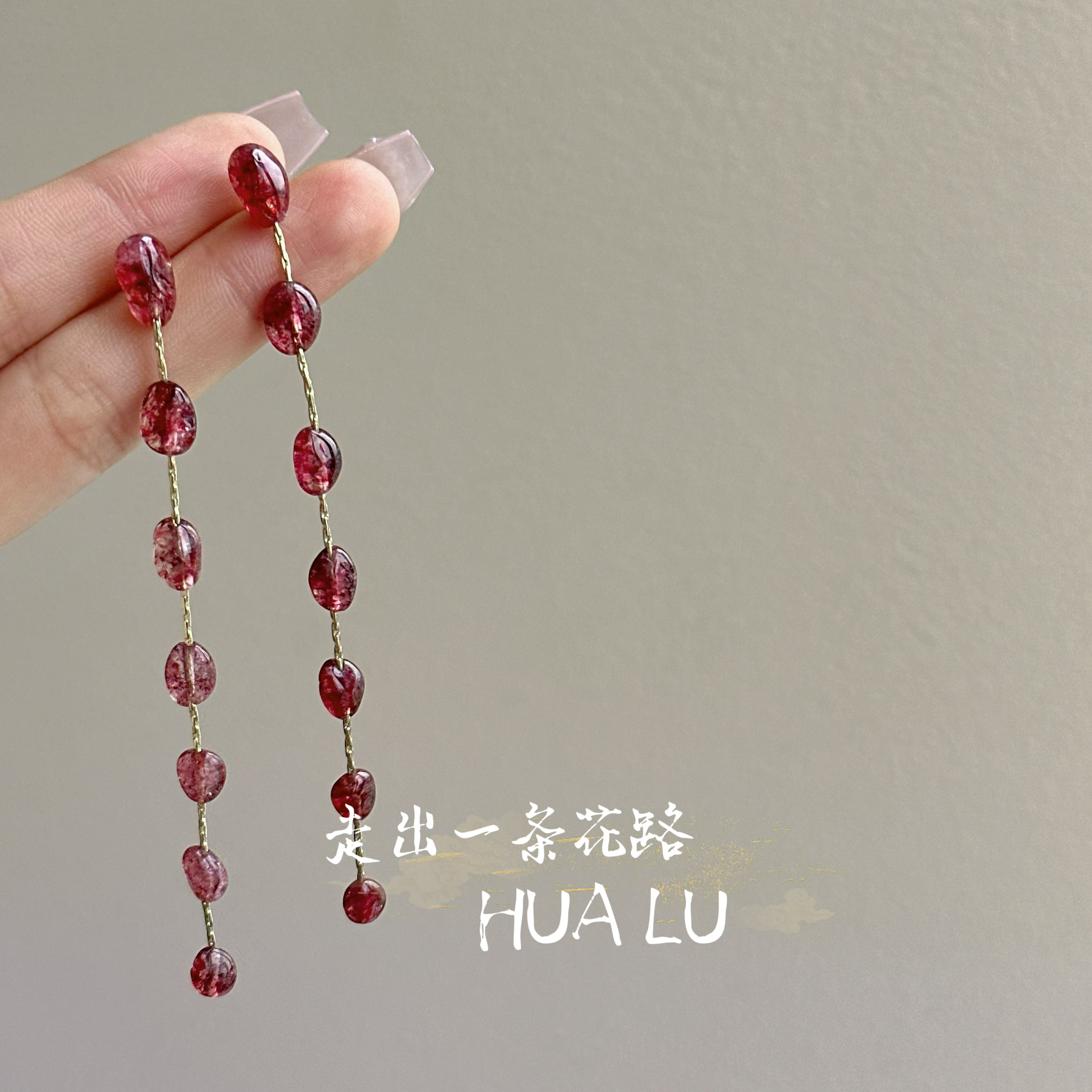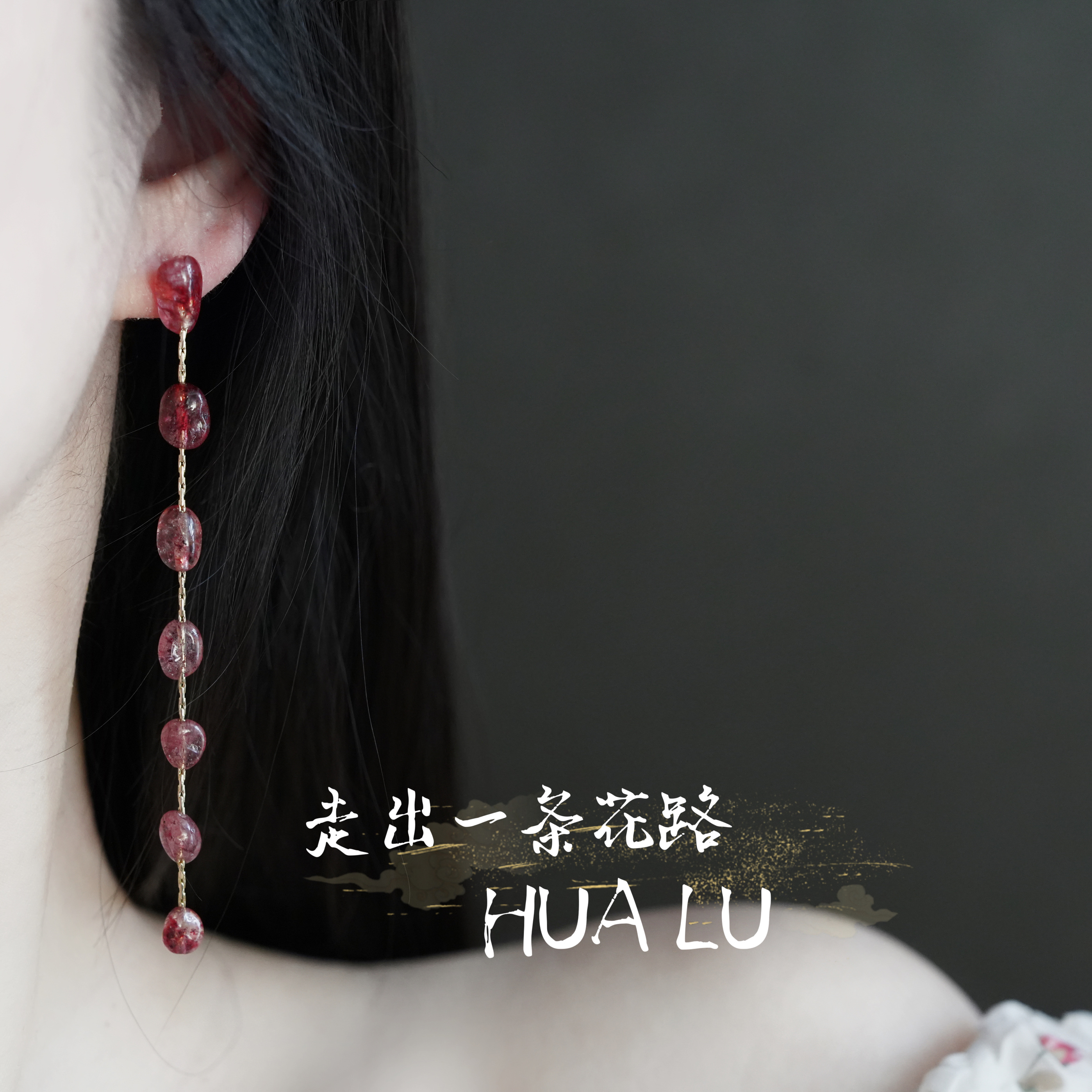 HUALU-馥郁石榴红~复古红色天然石流苏轻奢高级感仙气质耳环耳夹