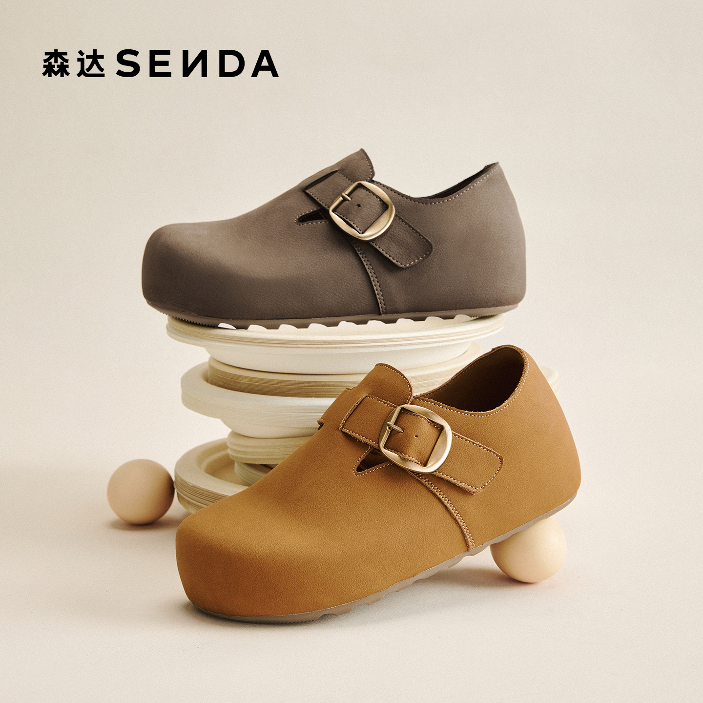 森达灰色勃肯鞋女鞋冬新款商场同款真皮厚底内增高保暖毛毛鞋棉鞋