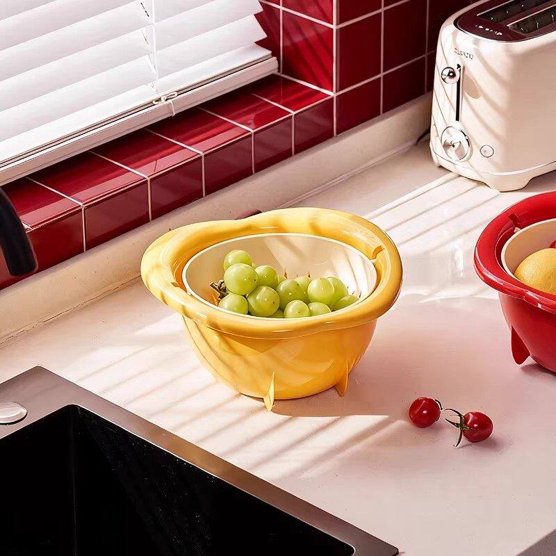 洗菜盆沥水篮家用客厅厨房双层旋转洗水果沥水篮滤水淘菜盆水果盘
