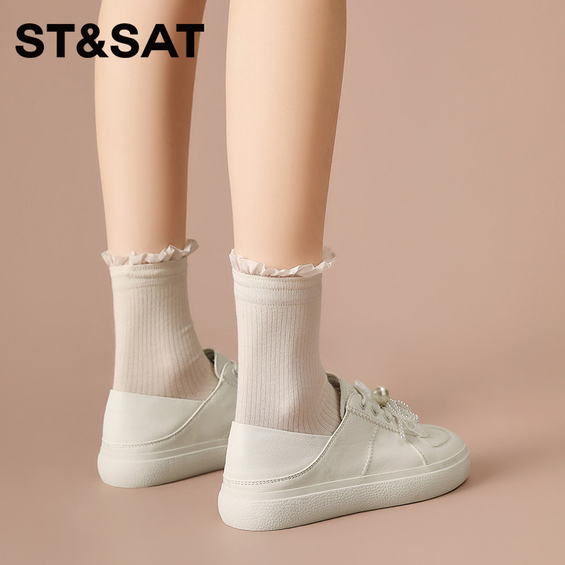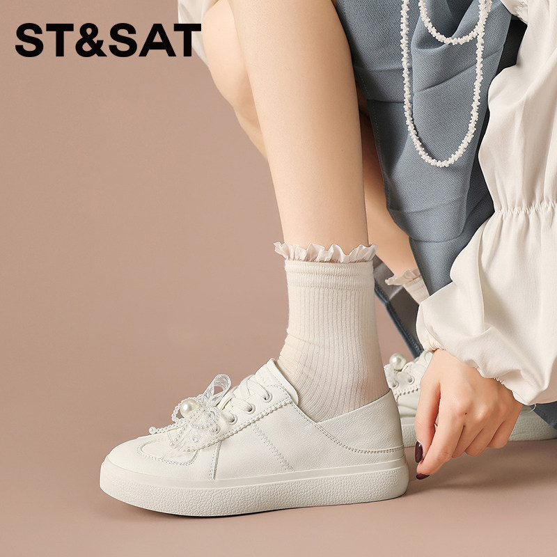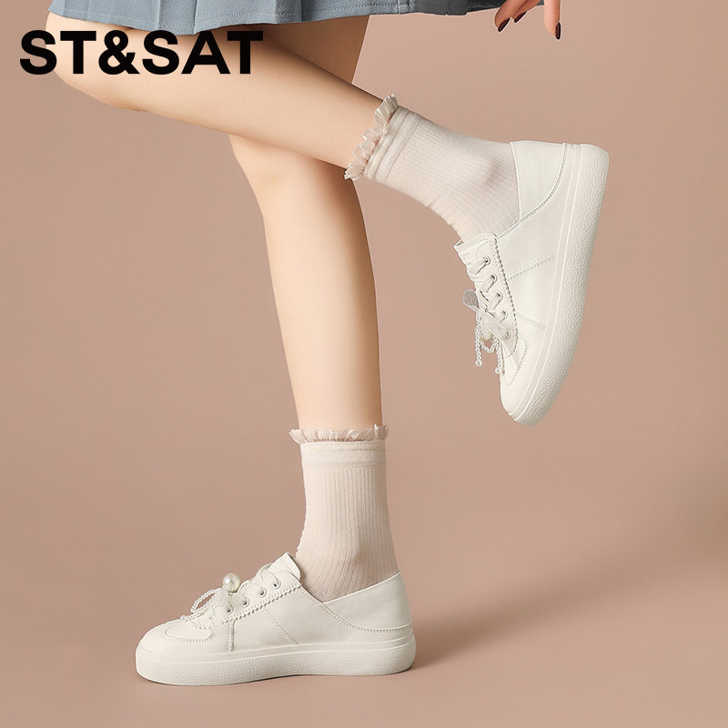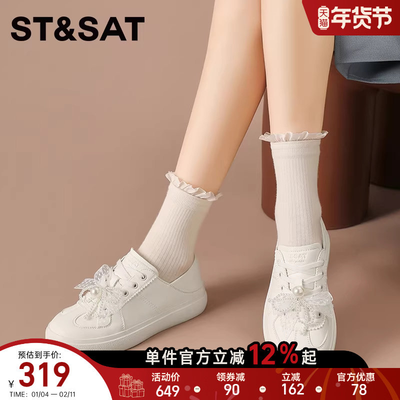 星期六2025新款小白鞋秋季一脚蹬芭蕾运动休闲鞋女鞋平底板鞋单鞋