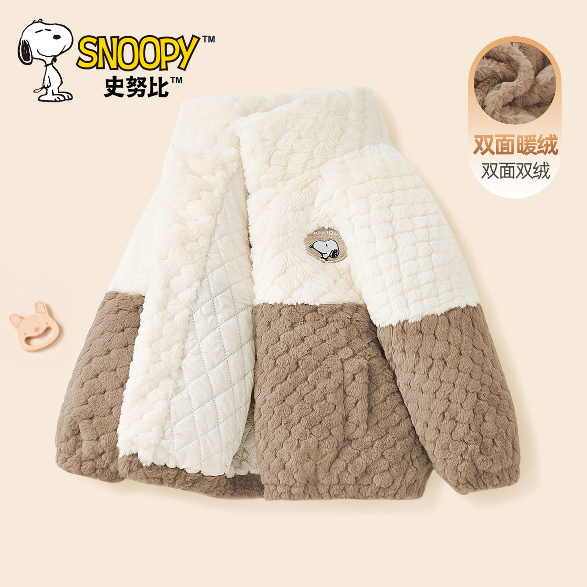 史努比女童加绒外套秋冬2024新款冬季加厚毛毛衣洋气保暖儿童冬装