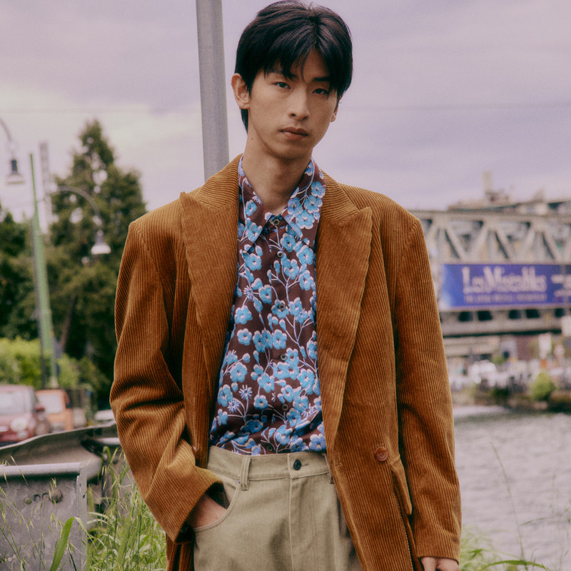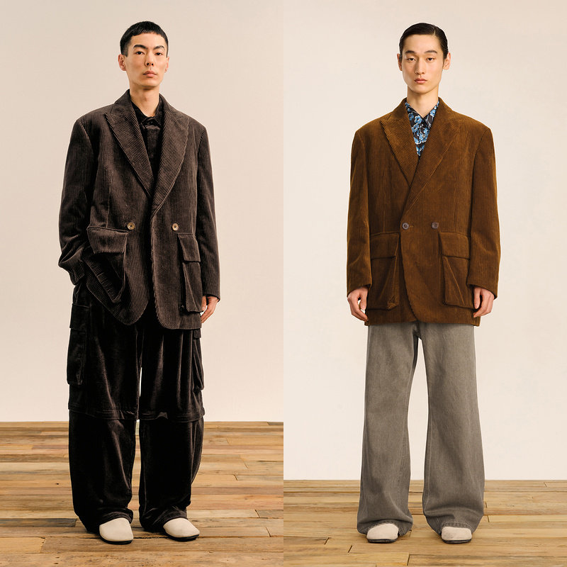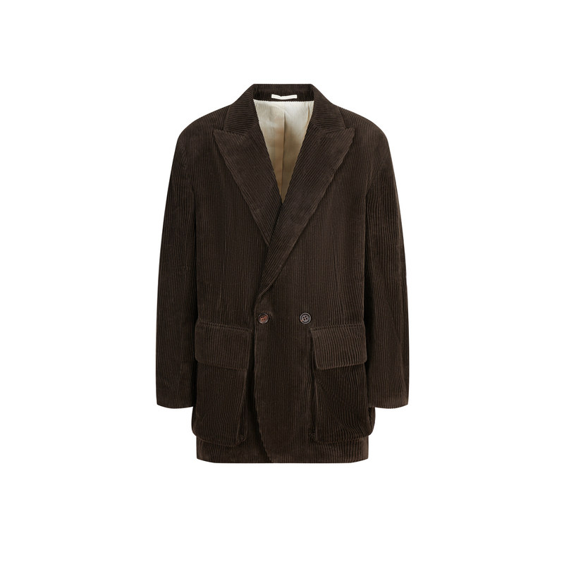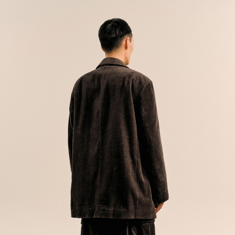 速写男装秋冬新款休闲宽松西服灯芯绒复古优雅时尚设计感外套上衣