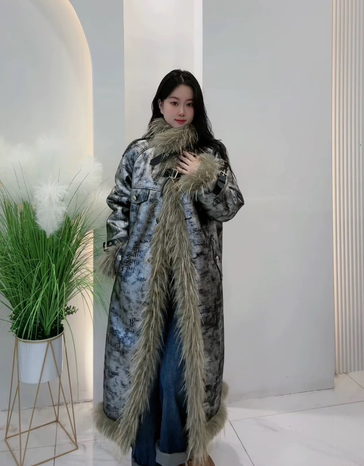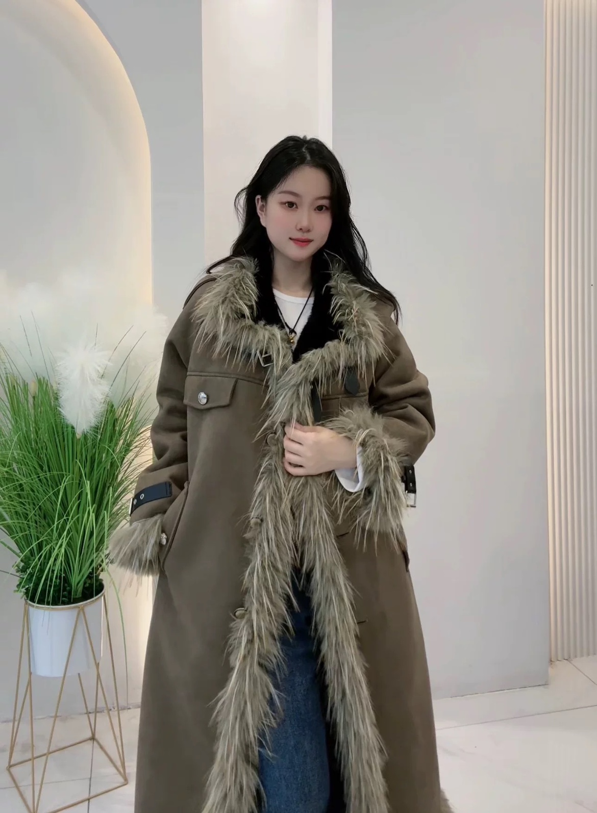 高级走秀款长款大衣新品高贵晕染麂皮绒琥珀系潮流保暖皮草外套女