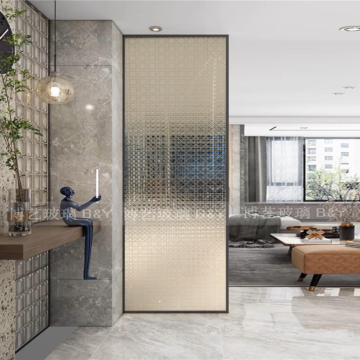简约时尚艺术玻璃现代高档玄关隔断双面车刻客厅屏风迪奥玻璃同款