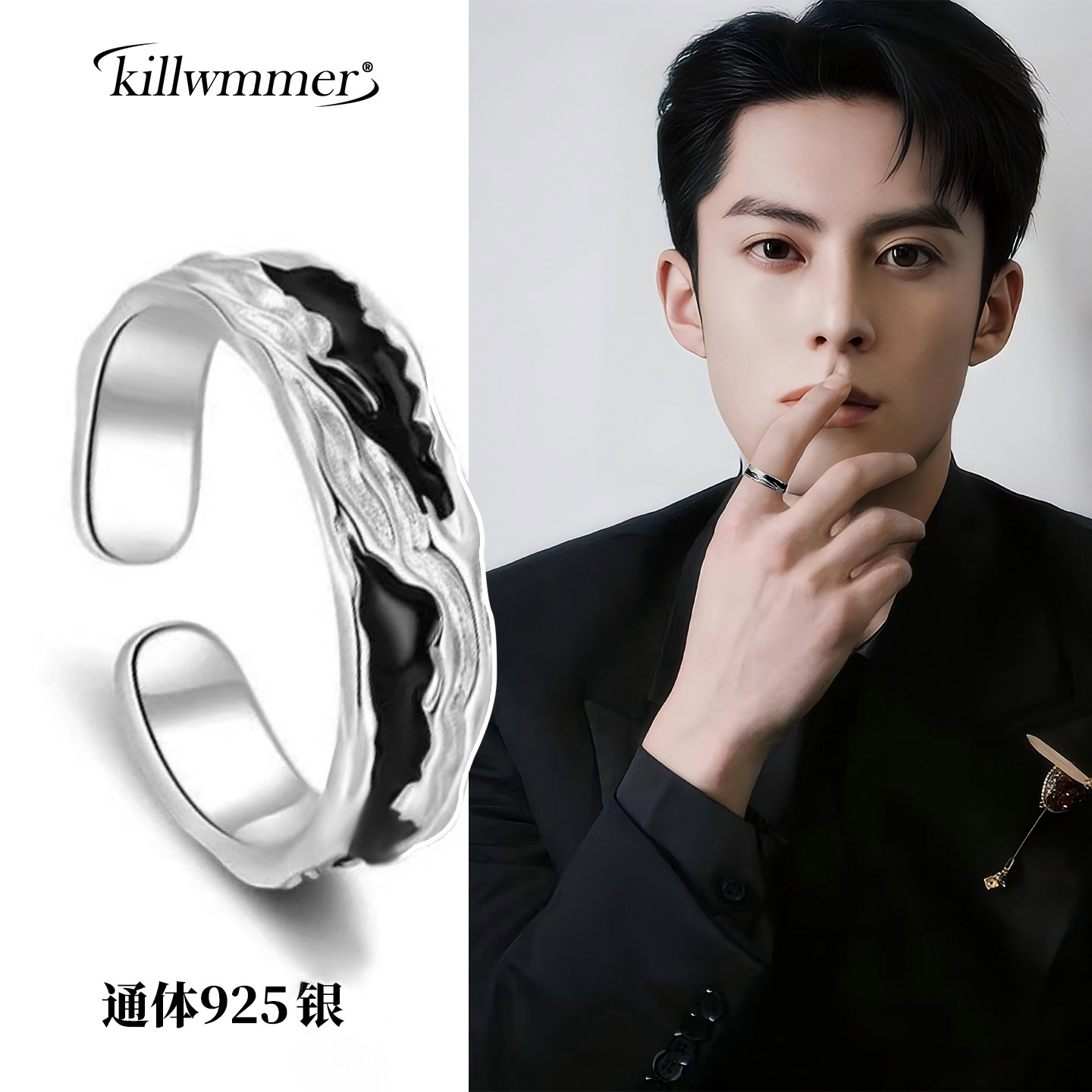 王鹤棣同款925银戒指男款个性复古单身戒尾戒男高级感银戒情侣戒