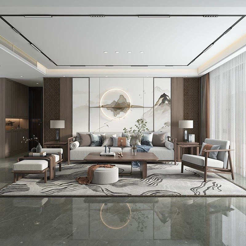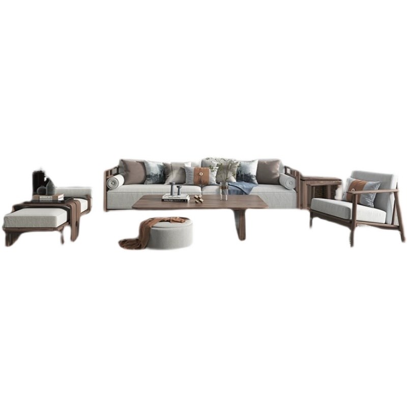 新中式实木沙发现代简约别墅家用客厅木布艺样板间家具沙发组定制