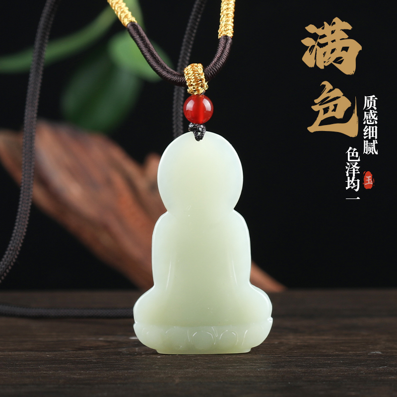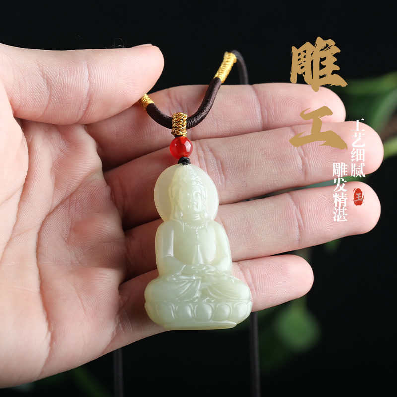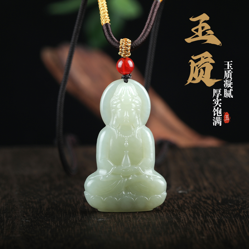 唐今玉正品天然老料和田玉白玉立体观音菩萨吊坠玉石挂件男士玉坠