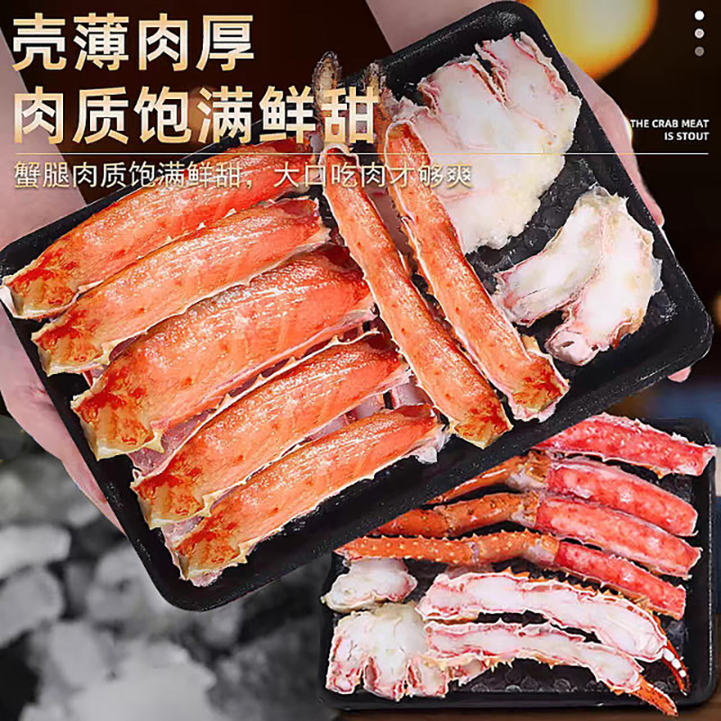 帝王蟹蟹腿肉俄罗斯进口即食蟹腿肉鲜活熟冻蟹腿拼盘皇帝蟹水产1
