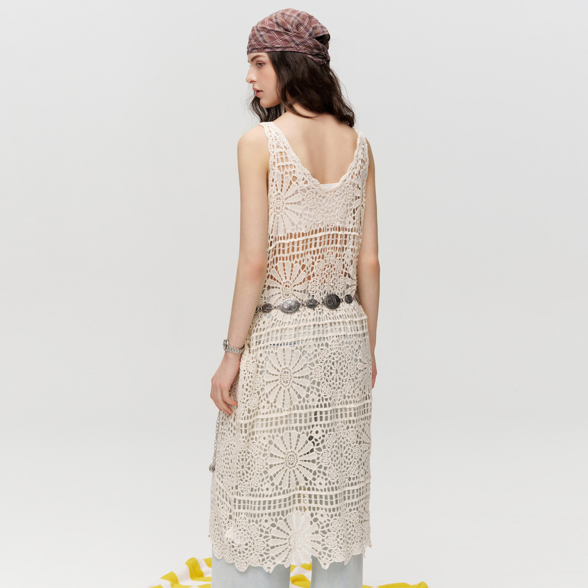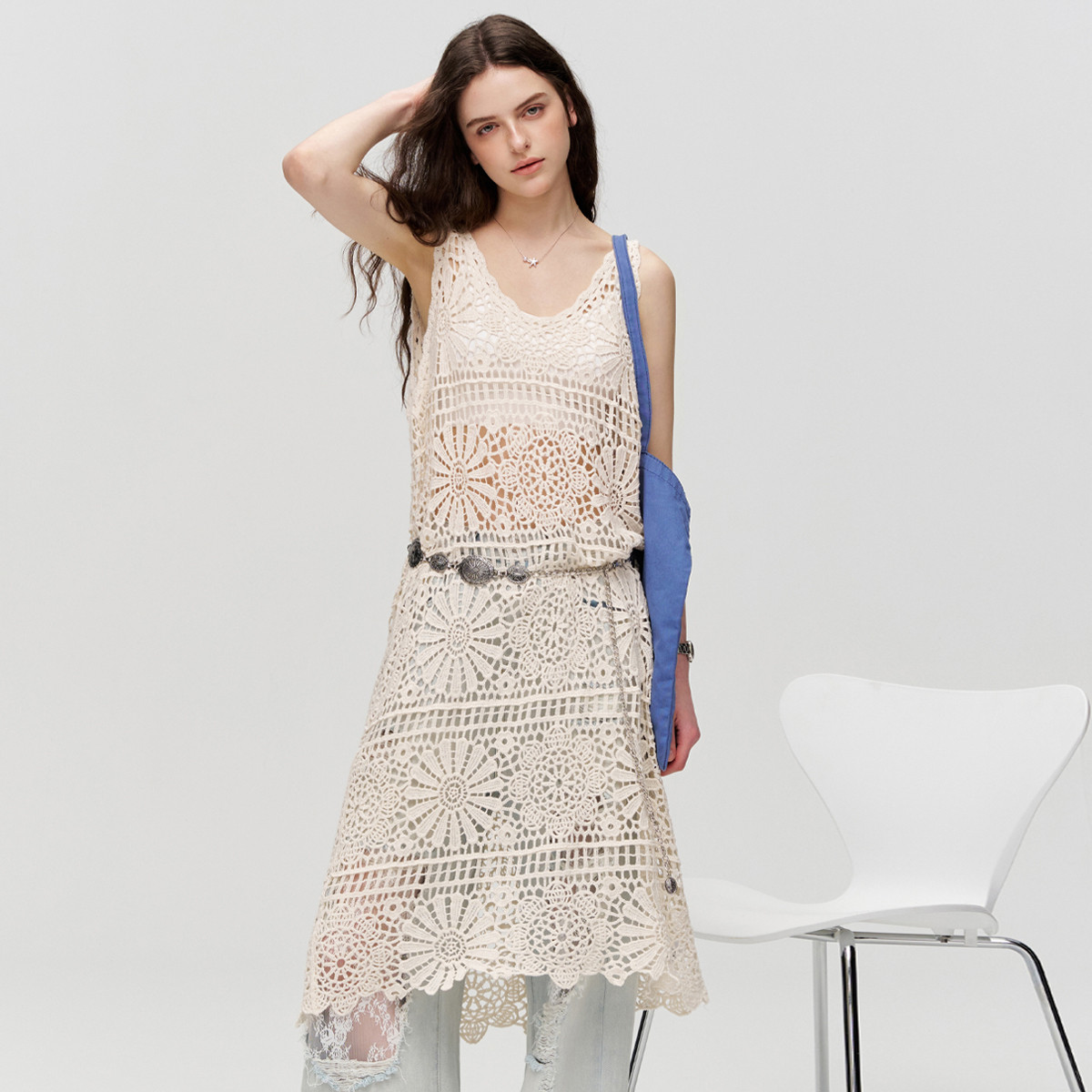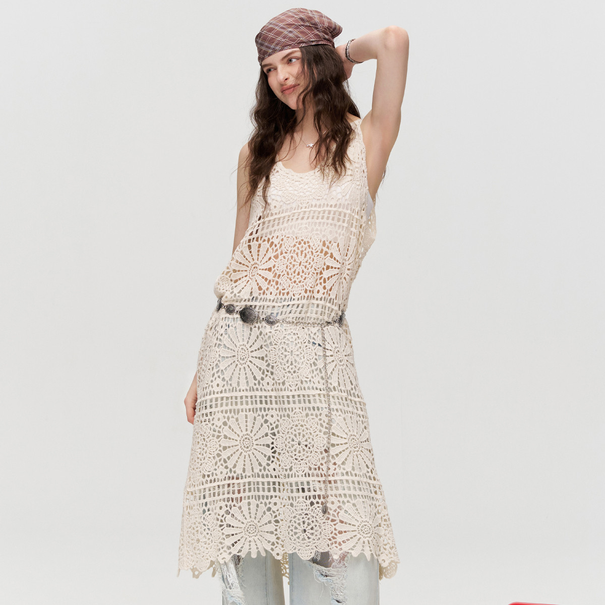 FOREVER 21波西米亚风复古镂空吊带罩衫背心连衣裙女秋25新款裙子