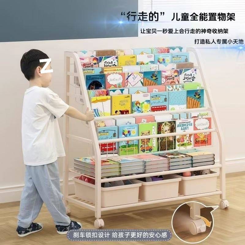 儿童书架玩具收纳架可移动多层分类收纳架简易落地多层铁艺杂志架