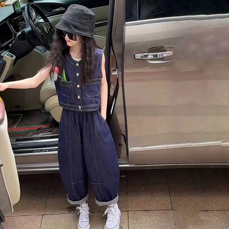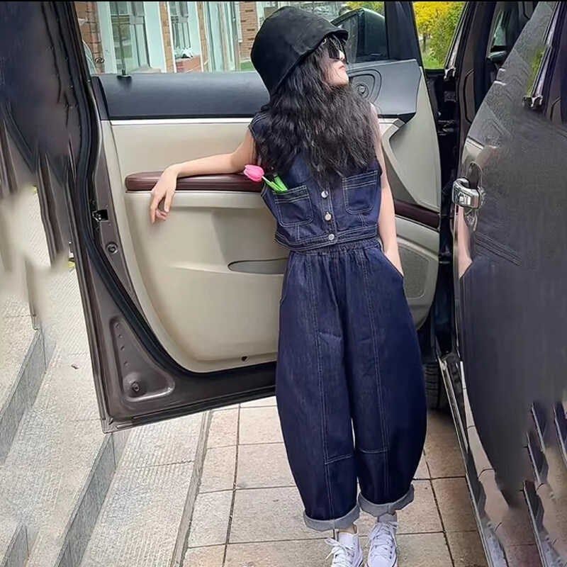 女童夏季牛仔套装2l024新款儿童洋气时髦两件套女大童夏装网红炸