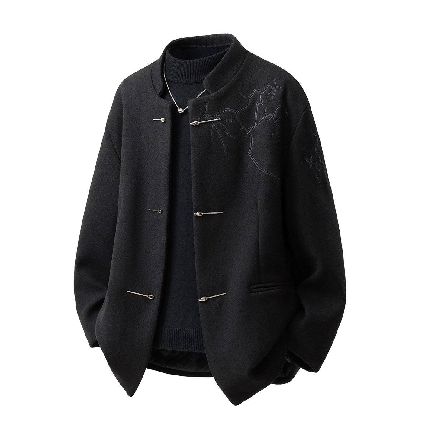 新中式男士短款毛呢外套国风穿搭一整套冬季加棉立领西服加绒西裤