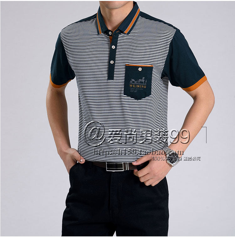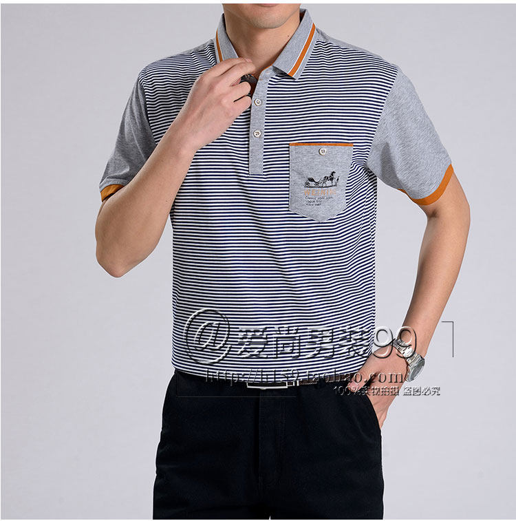 2017夏季中老年男装短袖T恤父亲节爸爸装中年男士翻领体恤衫宽松