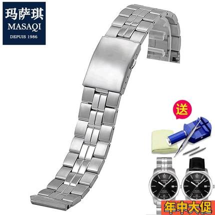 玛萨琪 适用天梭1853钢带PR100系列T049钢链T049410钢表带男19mm